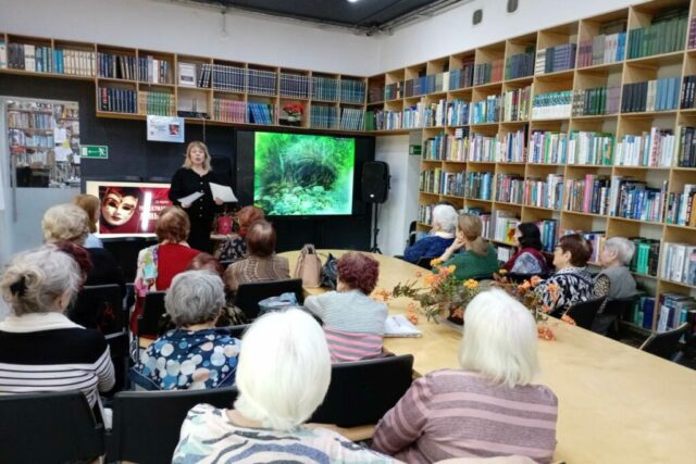 В библиотеке №12 (ул. Калинина, 281) для членов клубного объединения «Люди пожилые, сердцем молодые прошел 26 марта час искусства «Волшебный мир театра» Приглашенные сотрудники библиотек ВЦБС: Екатерина Кучук, актриса, и Светлана Орлянская рассказали о театральной жизни в Приморском крае. Екатерина Кучук является непосредственным участником губернаторской программы «Народный театр». О поездках по краю, о работе народных театров собравшиеся слушали с интересом. Они включились в разговор, вспоминали о театрах, которые были на их предприятиях, рассказывали о своих впечатлениях после посещения театра. С интересом гости встречи слушали Светлану Орлянскую. Её мини-спектакль вызвал бурю оваций. Екатерина Кучук читала Михаила Пришвина, сопровождая свое чтение музыкой и презентацией. В конце мероприятия гости засыпали выступающих вопросами, благодарили их за выступление, никто не остался равнодушным. Заинтересовались гости и интересными книгами о театре.