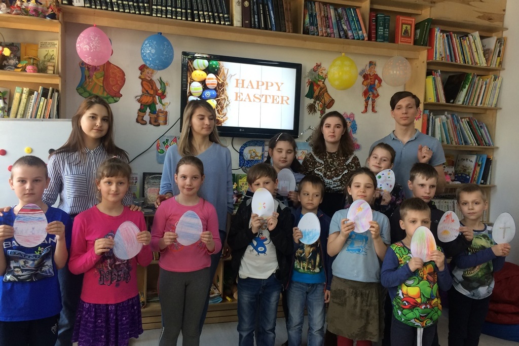 А 27 апреля детям рассказали о празднике Пасхи и учили новым словам, связанным с эти светлым праздником. Потом все вместе играли в весёлую игру по определению и произношению этих слов, разбившись на две команды. С заданиями дети справились отлично, быстро отвечая на поставленные вопросы. С удовольствием раскрашивали бумажные яйца, проявляя фантазию и выдумку.