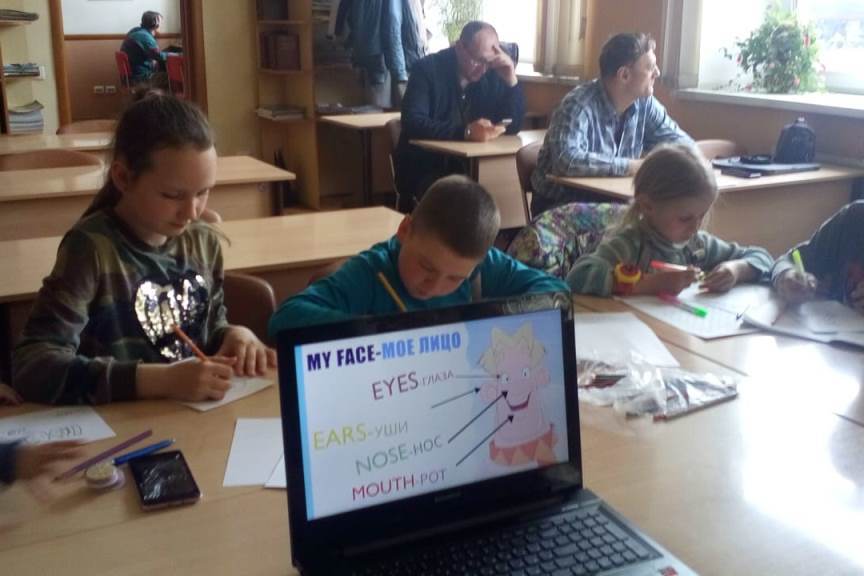 Потом все вместе весело демонстрировали полученные знания, пытаясь их изобразить самостоятельно, а заодно и повторить по-английски.