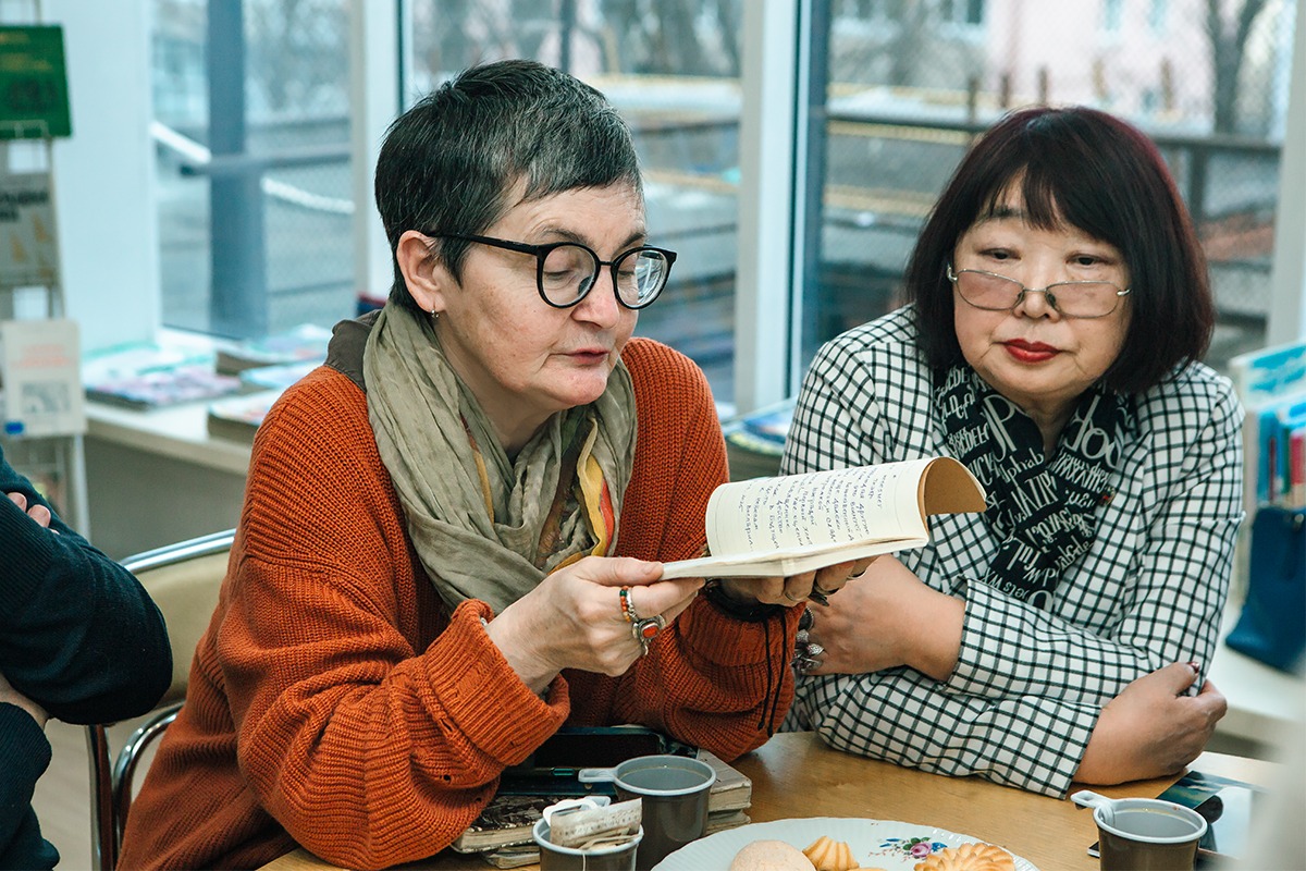 В рамках Всероссийской акции «Библионочь 2025» начал свою деятельность проект, исследующий текст и вопросы творческой самореализации «Угол круга». В библиотеку № 3 были приглашены известные во Владивостоке поэты, прозаики, художники, фотографы, издатели, журналисты. Раиса Мороз, Константин Дмитриенко, Сергей Нелюбин, Инна Корнеева, Лев Сысоров, Спартак Голиков, Константин Михайлов, Тамара Кузьмина и другие мастера читали свои стихотворения и произведения собратьев по перу, делились новыми событиями своей творческой жизни, вспоминали личные истории из жизни литераторов и художников Владивостока, ставшие частью истории города.