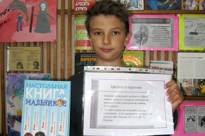 Читатели-подростки активно участвовали в диалогах о вреде табака. В процессе тренинга ребятам предлагалось придумать фразы, которыми можно отказаться от предлагаемых сигарет. А после просмотра мультфильма «Тайна едкого дыма», главные герои которого путешествовали по организму курильщика, зрители выходили со словами: «Жесткий мультик! Никогда не буду курить!».