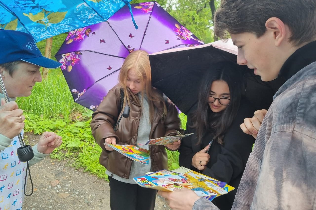 Встреченные в этот день жители Диомида, Надибаидзе, Черемуховой знакомились и общались все охотно. Малыши в дождевичках на детской площадке, молодые мамы, школьники, спешащие курьеры, новобрачные, каждый нашел минутку, чтобы поговорить с библиотекарями. И, конечно, горожане поздравляли сотрудников городской библиотечной сети, когда узнавали, что на весенний забег библиотекари отправились в свой профессиональный праздник. У весенней «Бегущей книги» все-таки несколько другая атмосфера, чем у осенней, романтичная: цветущие деревья, отголоски майских гроз и счастливые от предстоящей летней свободы школьники.