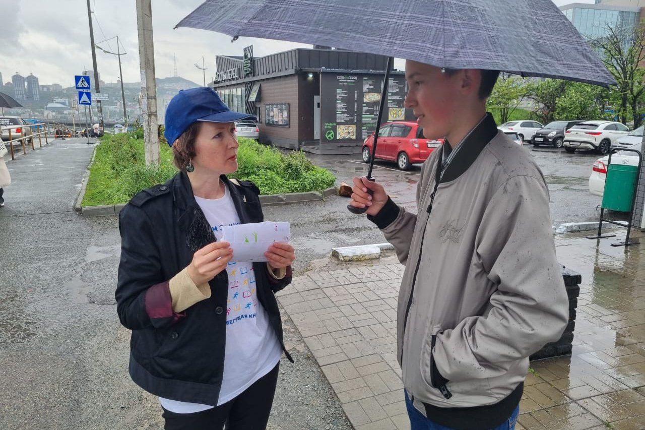 Встреченные в этот день жители Диомида, Надибаидзе, Черемуховой знакомились и общались все охотно. Малыши в дождевичках на детской площадке, молодые мамы, школьники, спешащие курьеры, новобрачные, каждый нашел минутку, чтобы поговорить с библиотекарями. И, конечно, горожане поздравляли сотрудников городской библиотечной сети, когда узнавали, что на весенний забег библиотекари отправились в свой профессиональный праздник. У весенней «Бегущей книги» все-таки несколько другая атмосфера, чем у осенней, романтичная: цветущие деревья, отголоски майских гроз и счастливые от предстоящей летней свободы школьники.