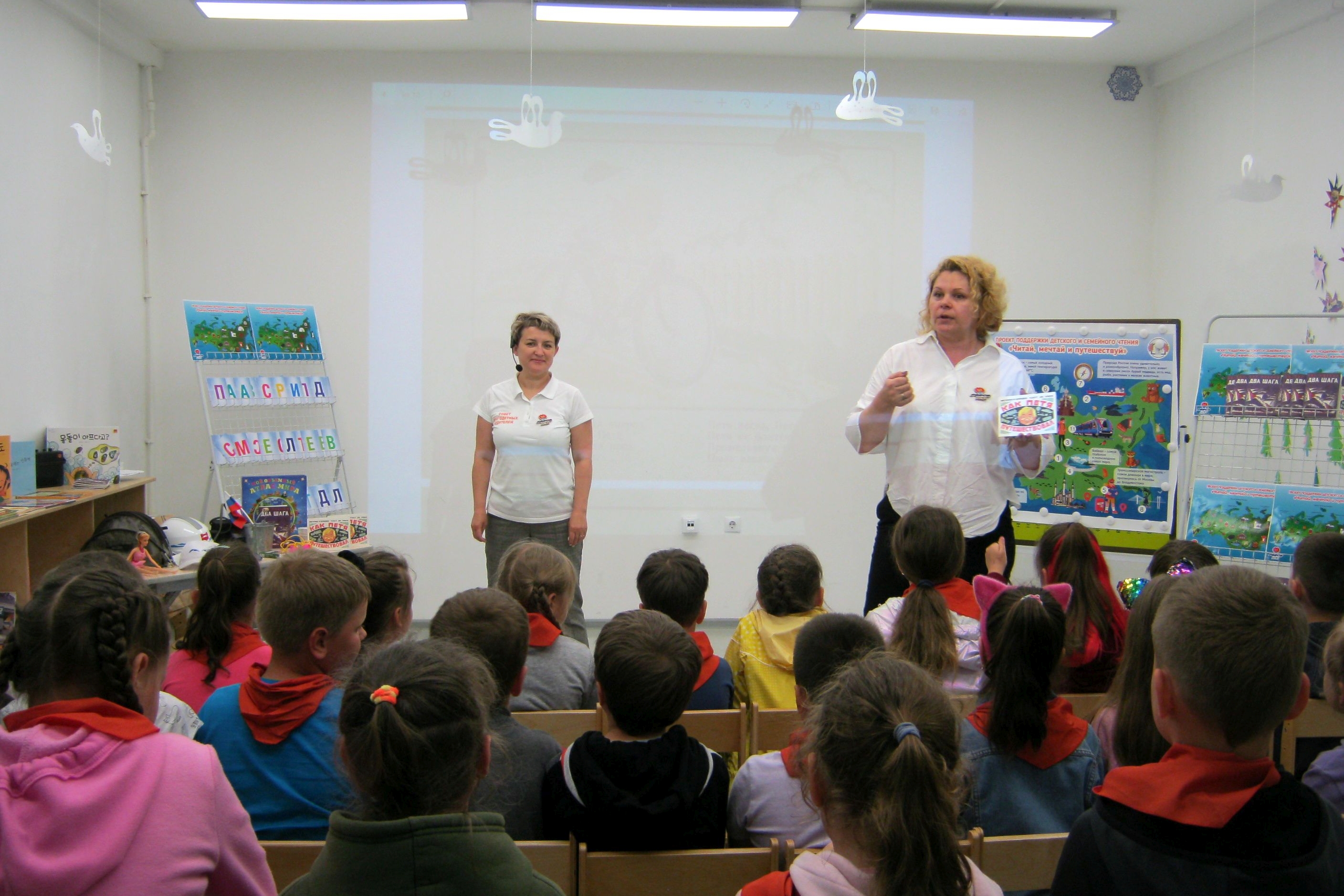 Уже во второй раз в библиотеках города проходят совместные мероприятия с Приморской региональной организацией «Совет многодетных родителей Владивостока» в рамках проекта «FESCO детям». Ребята из центра творчества юношества и детства с большим азартом участвовали в интеллектуально-развлекательных играх и викторинах, касающихся путешествий по нашей огромной стране. В качества подарка дети получили замечательные книжки, изданные Транспортной группой «FESCO» — «Два шага» Евгения Иванова и «Как Петя путешествовал» Дмитрия Урина – и все вместе спели песню «Что мы Родиной зовём?» под аккомпанемент аккордеона педагога.