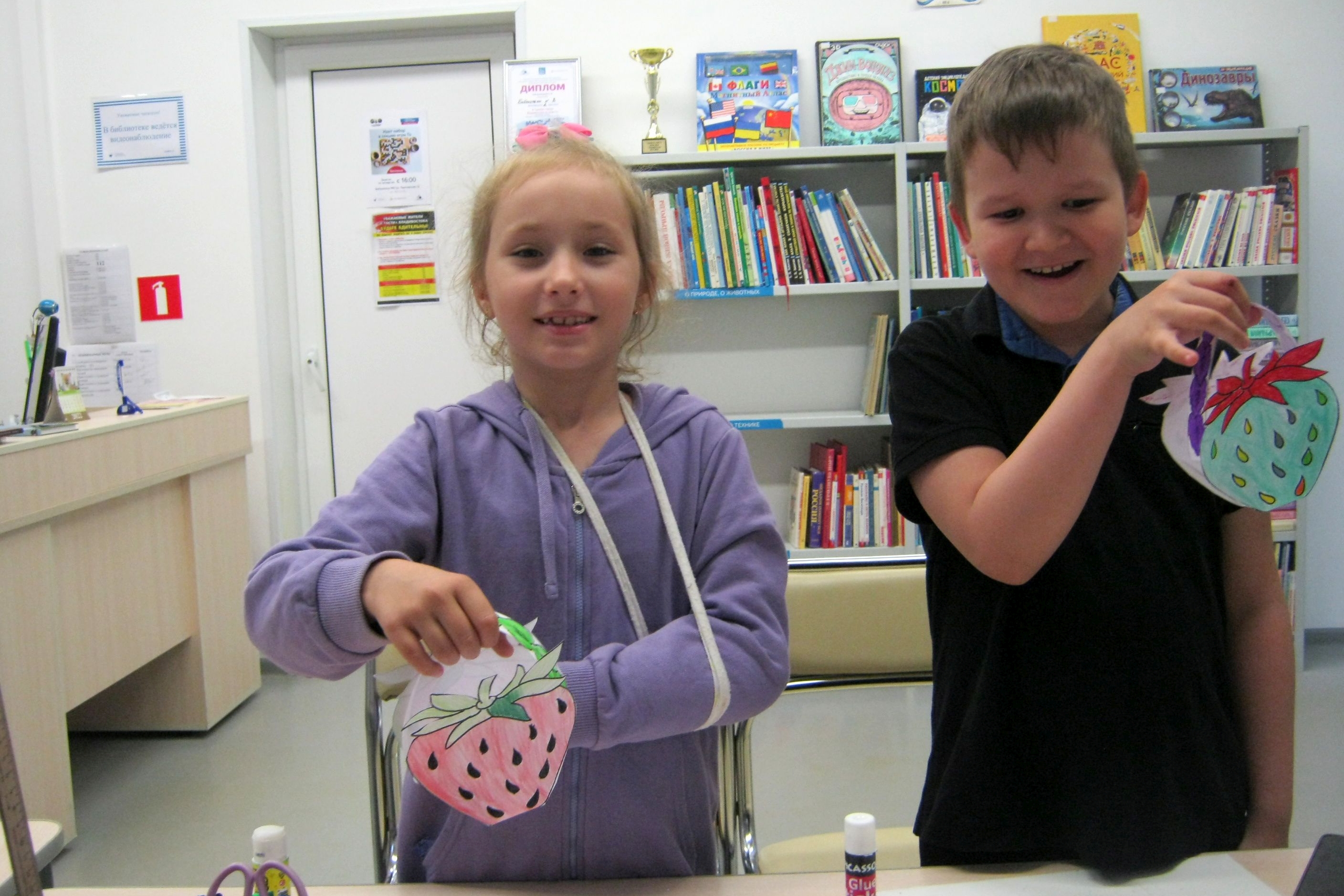 В библиотеках продолжаются мероприятия и другие активности для детей и подростков на прошедшей неделе в рамках программы «Лето просвещения». К примеру, в библиотеке №8 дети активно включились в работу мастерских творчества, успешно делают поделки на летнюю тематику на мастер-классе «Бумагопластика», который проходит каждый вторник в библиотеке. Совсем недавно в Приморском крае прошел ежегодный фестиваль клубники, которую любят очень многие, поэтому ребята смастерили из бумаги и разукрасили корзинку в форме клубники.