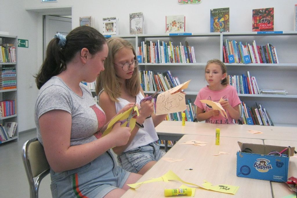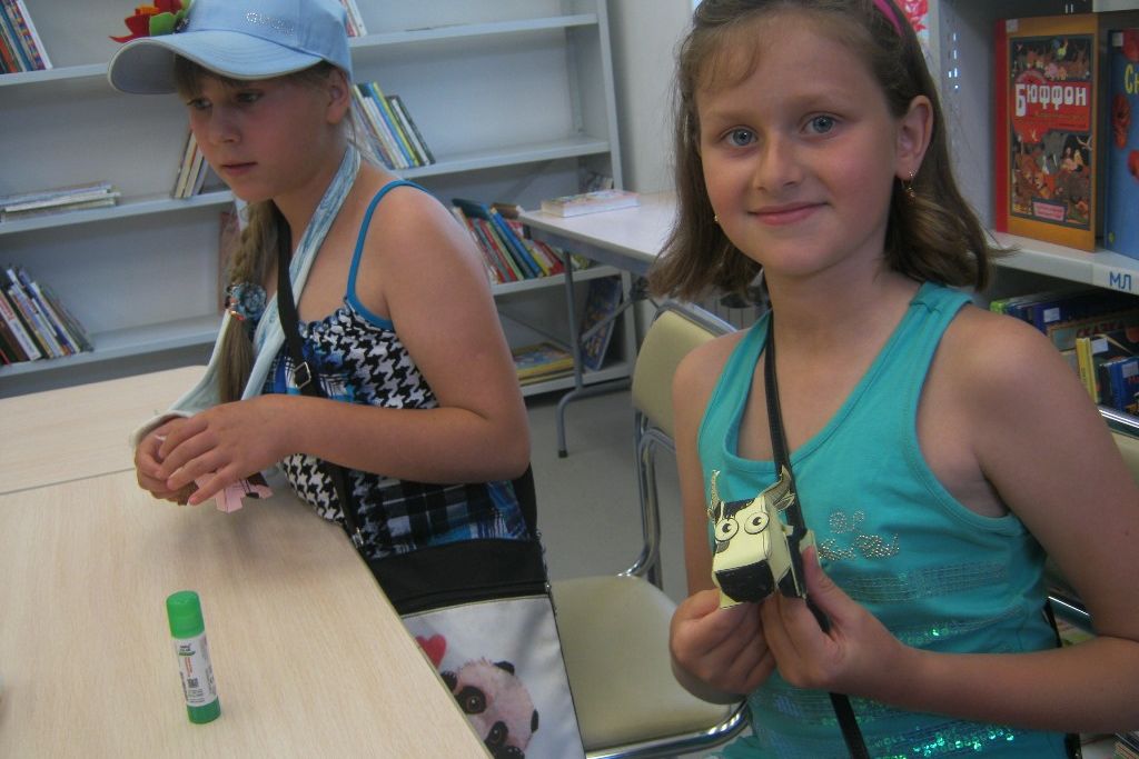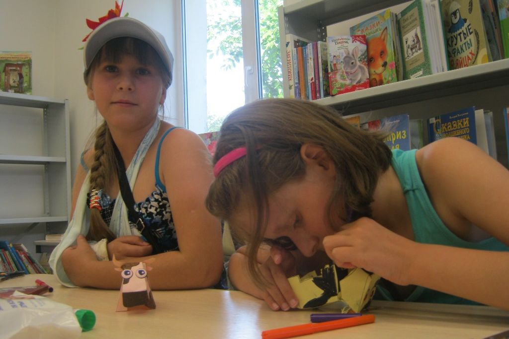 23 июля на творческой мастерской в библиотеке №8 к детворе присоединились девочки постарше. Милана и Вика пришли в библиотеку за книгами, а потом остались на творческую мастерскую. Сперва подростки смеялись с того, что они, уже такие взрослые, сидят с детворой и вырезают из цветной бумаги фигурки для поделки-коровы. А потом, когда смущение прошло, девочки расслабились и за работой стали шутить и обмениваться новостями.