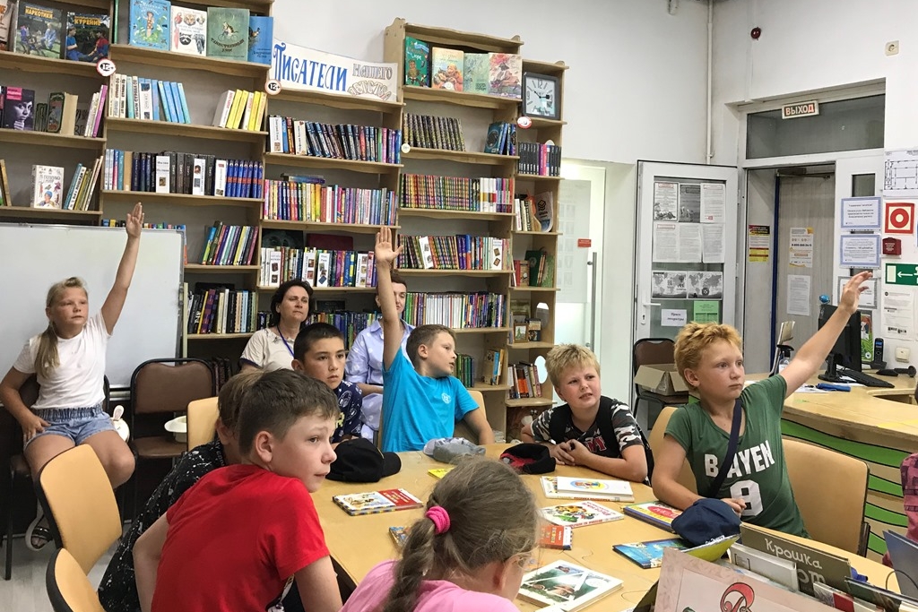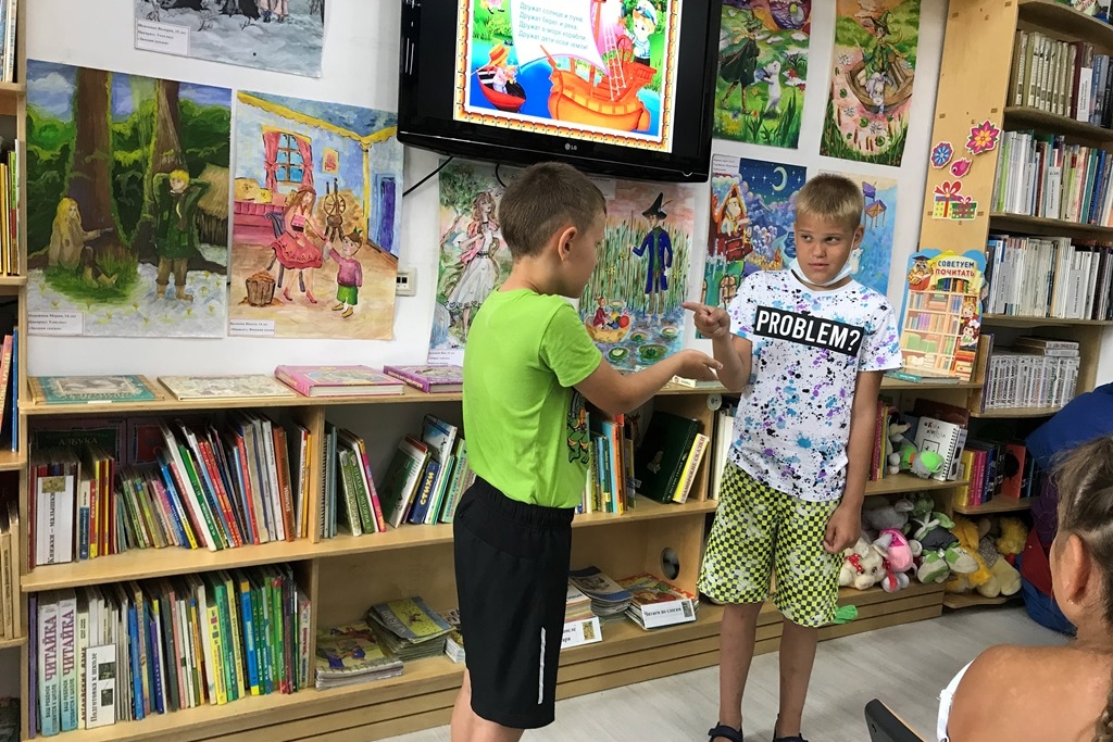 Хором пели «Песенку друзей» Сергея Михалкова, а потом активно отвечали на вопросы интерактивной литературной викторины «Не имей 100 рублей, а имей 100 друзей», используя представленные на выставке книги дружбу.