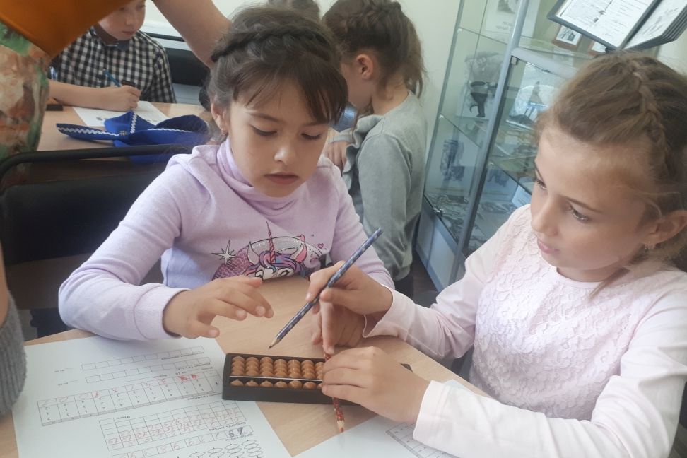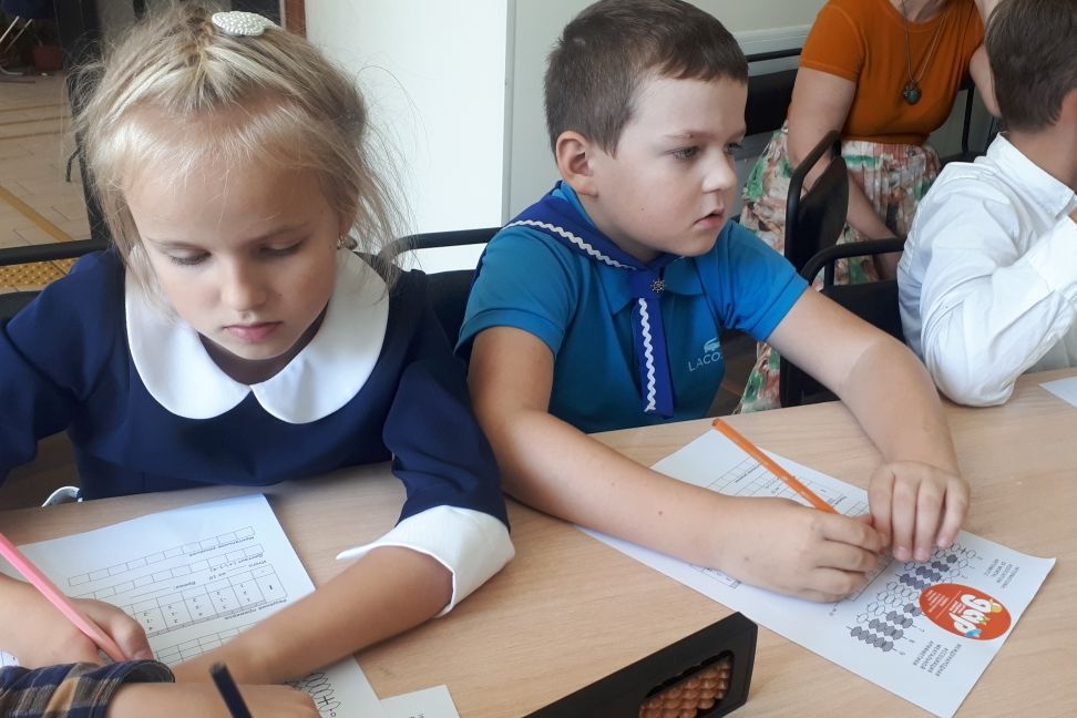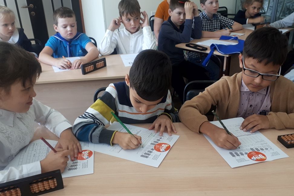В заключении ребята самостоятельно посчитали 10 примеров в три действия на соробане и, затем ментально. Все задания выполнялись на скорость, один из школьников, выполнивший задания быстрее всех унес с собой награду в виде ученического соробана.