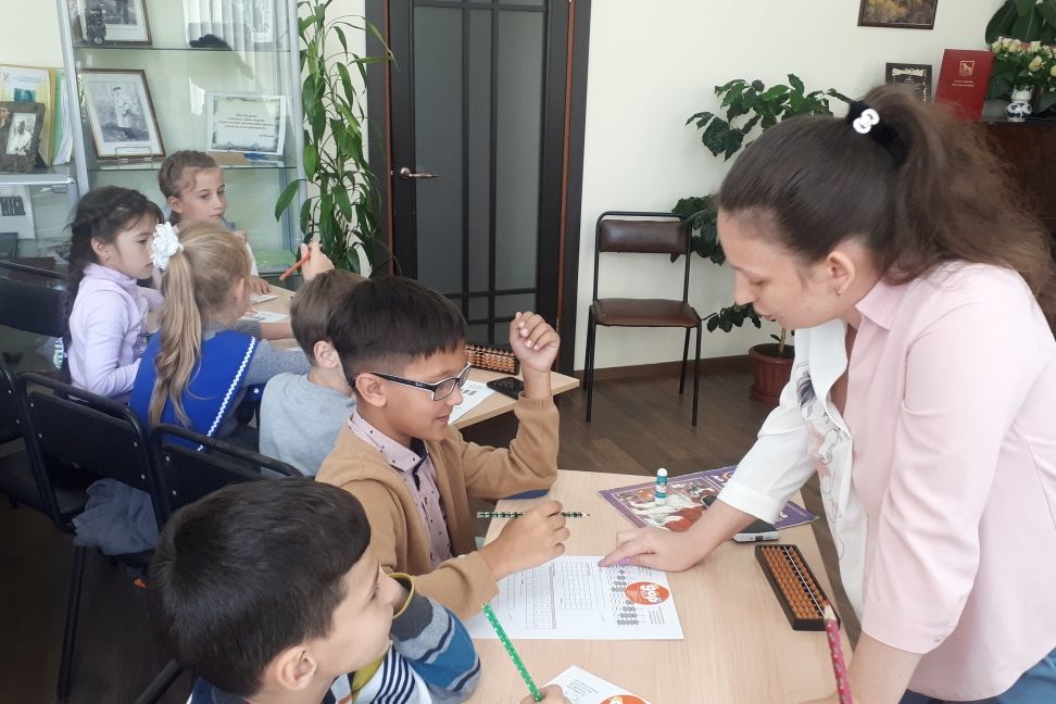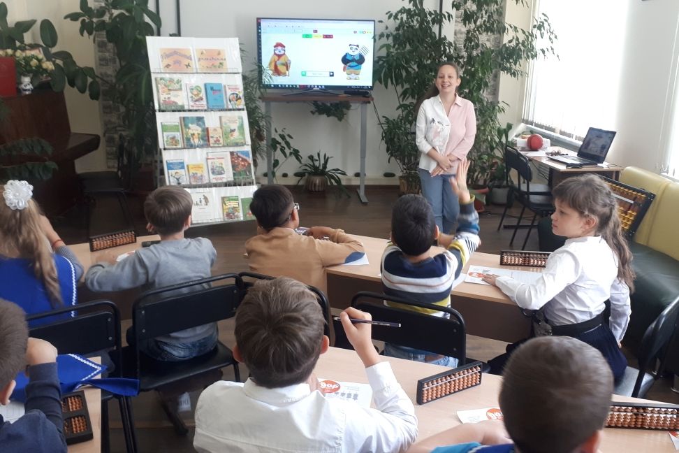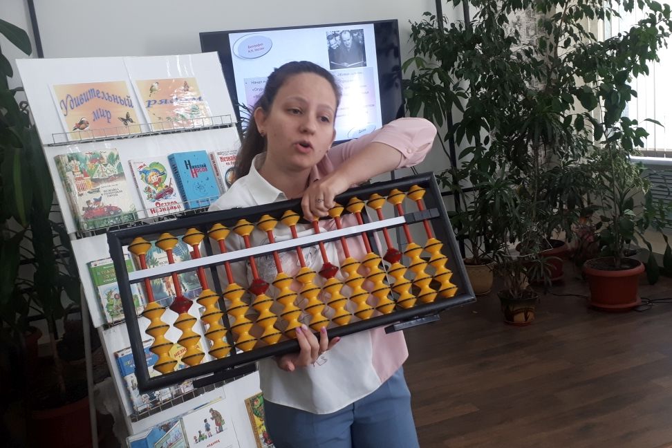 Затем гость библиотеки, директор Деткой академии развития ДАР, Буйновская Нина Сергеевна, представила ребятам свою авторскую методику развития интеллектуальных способностей. И рассказала ребятам историю появления японских древних счёт «Соробан». Этот подход имеет ряд педагогических преимуществ по сравнению с обучением счёту на бумаге и калькуляторе. Благодаря одновременной работе правой и левой руки у обещающихся синхронизуется работа двух полушарий головного мозга.