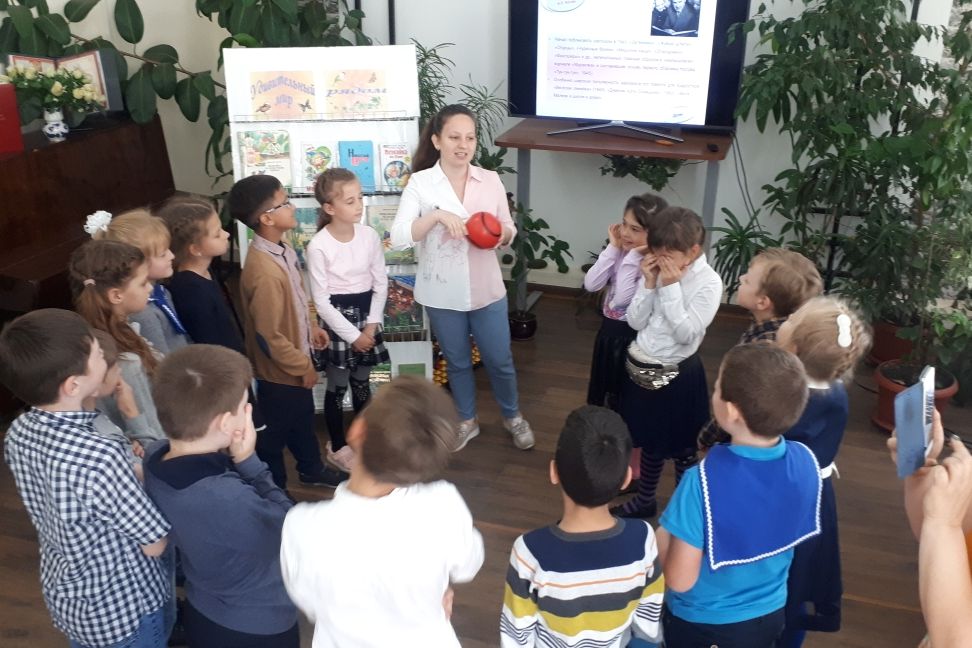 В начале встречи школьники увидели электронную презентацию, которая была посвящена детскому писателю Николаю Носову. Наибольшую известность и любовь читателей получили его сказочные произведения о Незнайке. Особенно широкую популярность завоевали его повести для подростков «Весёлая семейка» (1949), «Дневник Коли Синицына» (1950), «Витя Малеев в школе и дома».