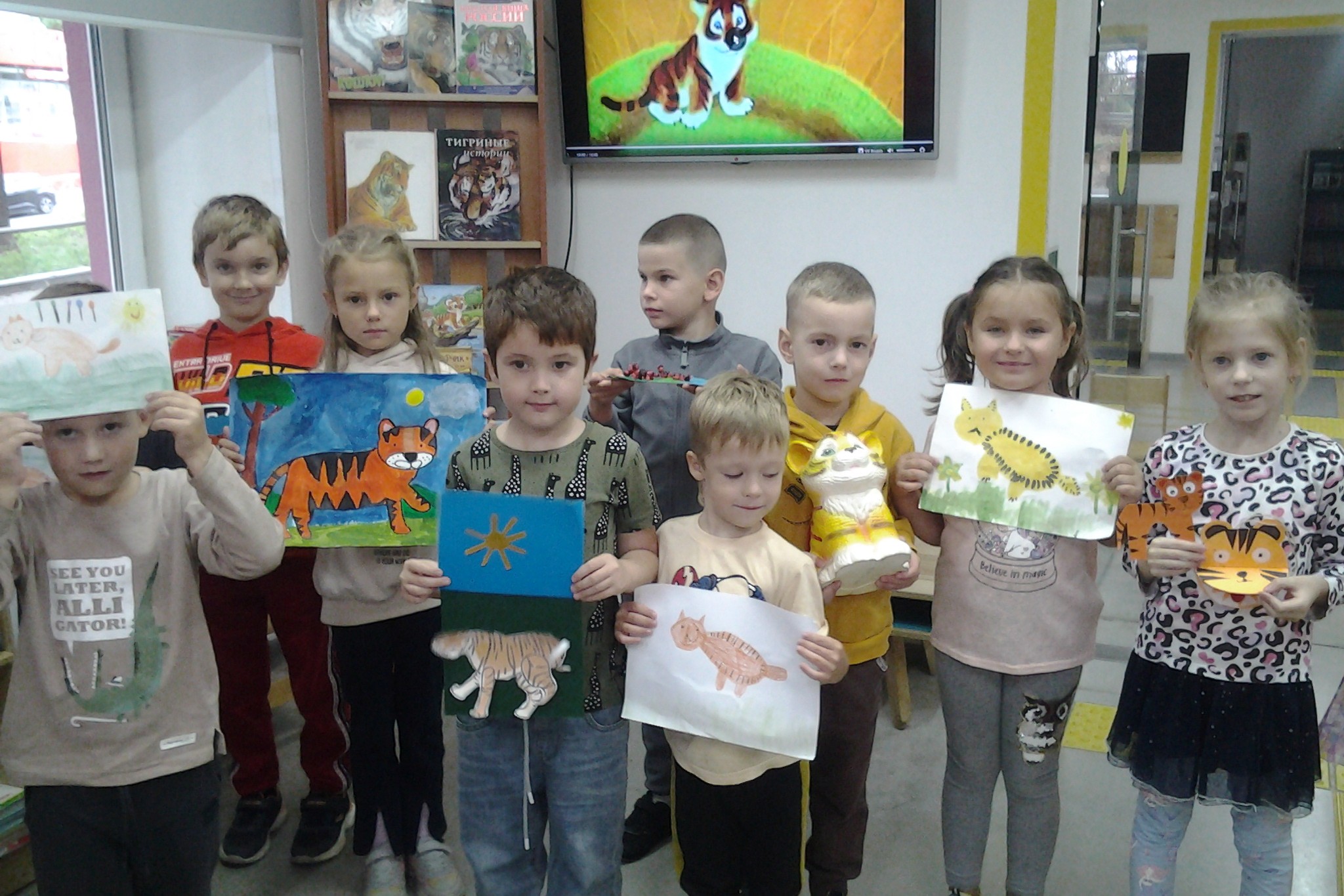 25 сентября дошколята из подготовительной группы детских садов № 25, 17 стали участниками познавательно – игровой программы «Хозяин Уссурийской тайги» в детской библиотеке № 5. Дети посмотрели презентацию об образе жизни, местах обитания, интересных особенностях амурского тигра. Малыши познакомились с героями детских книг о тиграх: тигренком на подсолнухе из сказки Ю. Коваля, Амурчиком и его друзьями из сказочных повестей С. Георгиева. Дети пришли на мероприятие с выполненным домашним заданием: с рисунками и поделками тигра. Все работы оказались просто замечательными. Ребята рассказали, что делали свои работы вместе с родителями.