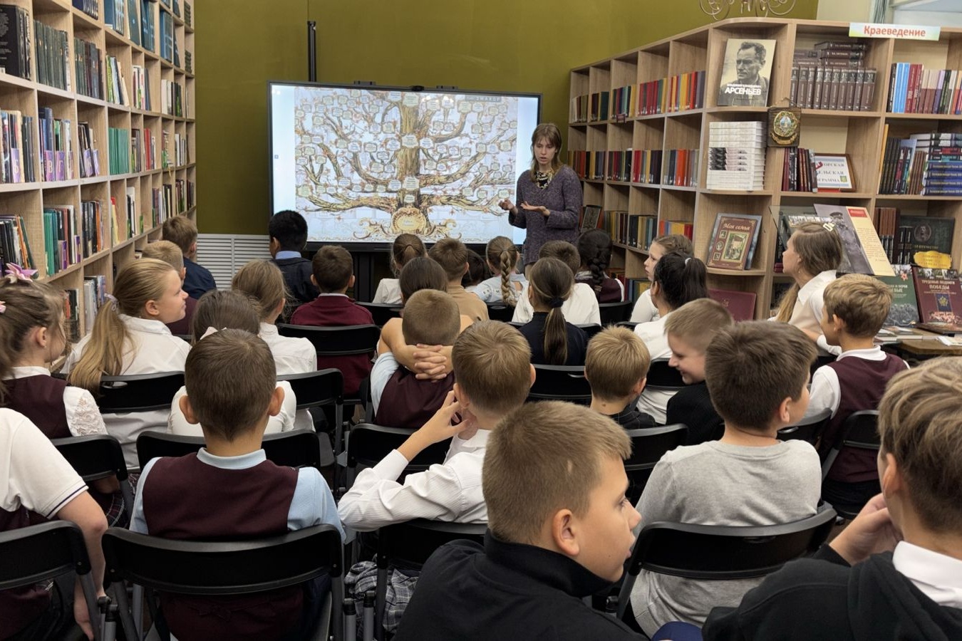 Познавательный час “Кто кому приходится?” на тему родственных отношений проведен 24 сентября в библиотеке №4 (ул. Светланская, 205) в рамках Школа родоведения “Моя родословная” для учеников 3 класса МБОУ «СОШ № 22». На встрече ребята узнали, как и зачем люди описывают свои родословные, поговорили о ценности семьи в жизни каждого, а также узнали, какие слова существуют для названия дальних родственников.