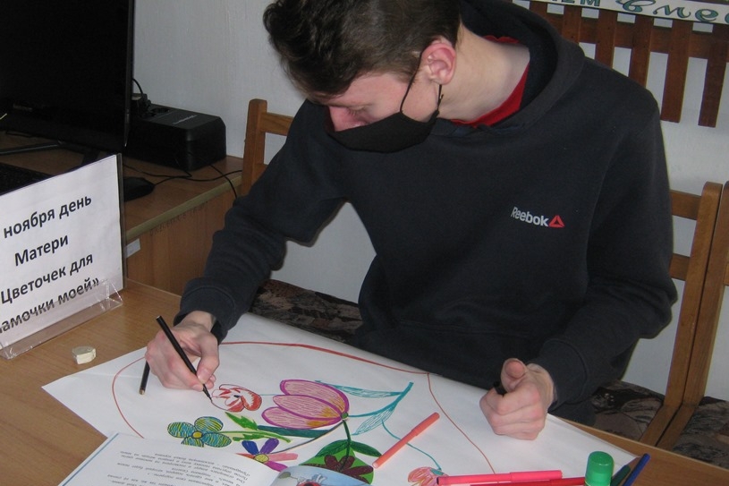 Как сказал Зигалов Дмитрий: «Я без мамы, без ее поддержки и понимания, наверное, не закончил бы колледж. Мама меня воспитала ответственным человеком, глядя на нее я научился любить природу, свой город, читать книги. Вот рисую для нее цветок, для общего букета, у меня даже настроение поменялось, как – то стало легко на душе».