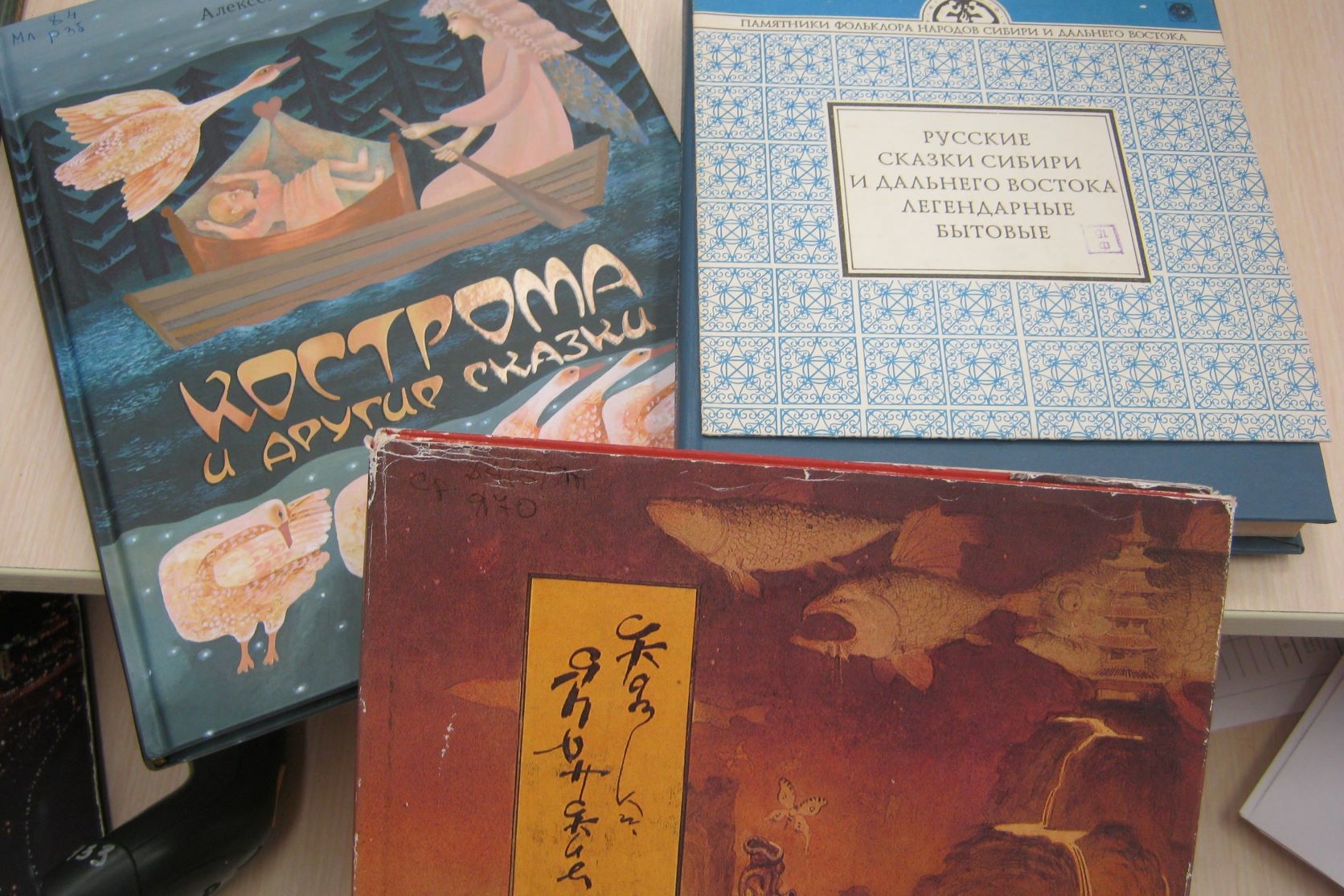 16 ноября в библиотеке №8 ученики 1 «Б» класса средней школы №35 ближе знакомились с миром сказок. Схожие сказочные сюжеты, которые можно встретить в разных странах, сказки для дремы и жутковатые сказки, все это в детстве очень увлекательно всем без исключения, а бывает, что и повзрослев, человек продолжает с интересом читать сказки. Иногда такая долгая любовь к сказкам определяет будущую профессию человека: психолог, собиратель фольклора. И тогда потом на полке, рядом с арабскими, болгарскими, дунганскими, нанайскими, японскими сказками, появляется, например, фольклор народов Сибири и Дальнего Востока или «Сказки удэгейской тайги». А сказочные существа, которые из народного фольклора перекочевали в современные мистические романы для юношества, такие книги еще называют еще «страшилками для подростков». «Болотница» Татьяны Мастрюковой — это как раз очень добротная, почти взрослая история про языческое существо из «нечистой» деревни Анцыбаловки. Первоклассников в библиотеке, конечно, пугать никто не собирался, но, надо сказать, что сюжет «Болотницы» дети слушали с наибольшим интересом. Подрастут и сами будут читать сказки для взрослых, например, «Двоедушника» и «Двоедушницу» Руты Шейл, хотя в этих романах отражен все-таки городской мистический фольклор, городские мифы. А пока детвора ходит только в первый класс, самое время читать волшебные сказки, народные и литературные. И непременно с иллюстрациями, чтобы от красоты дух захватывало, как от разворотов с рисунками Веры Павловой к «Костроме» Алексея Ремизова.