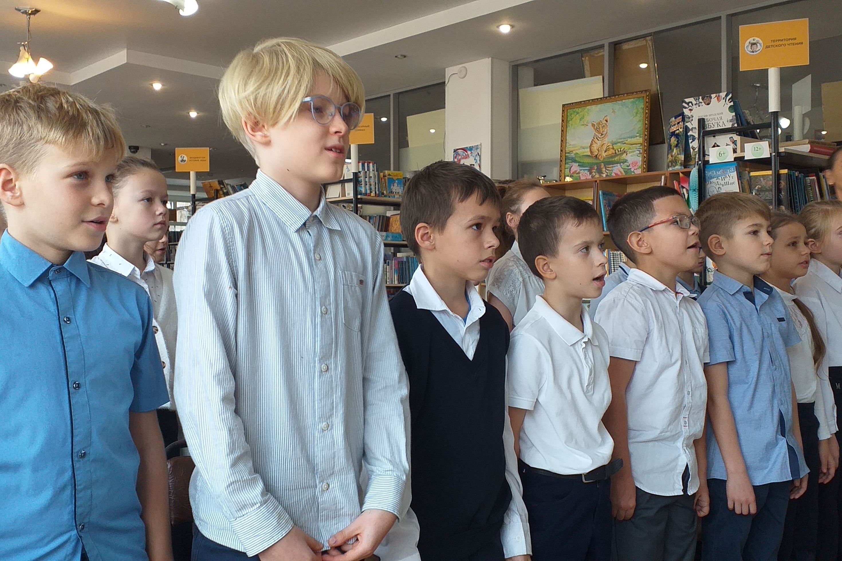В заключении спели гимн города и посмотрели литературу, представленную на выставке, сопровождающей мероприятие.
