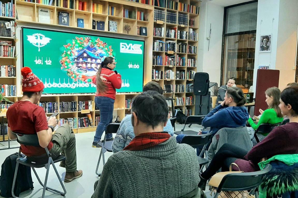 В конце декабря в рамках проекта «Вечерняя библиотека» в библиотеке БУК состоялась заключительная в 2023 году встреча клуба любителей фантастики «Белый Дракон», посвященная разборам традиций «Новогоднее настроение» с целью вернуть воспоминания о зимних праздниках из детства, которые вызывали у многих энтузиазм, ощущение чуда и надежду на лучшее.
