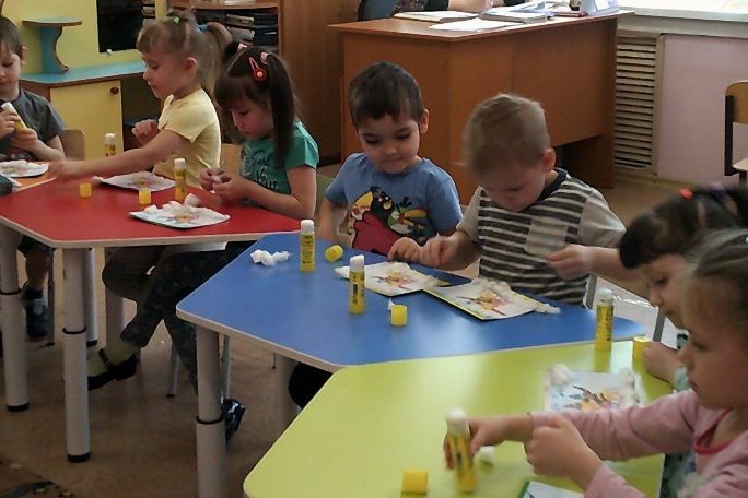 В «зимних» номерах журнала «Мурзилка» ребята искали картинки, на которых изображено как наряжают елку, встречают Новый год, катаются на лыжах, коньках и санках, кормят птиц, лепят снеговиков. Дети сделали вывод, что зима – это прекрасное время года, когда можно очень весело и с пользой для здоровья провести время. На память о зиме дети изготовили аппликацию: смеющиеся ребята катятся на санках с горы, а снег, мягкий и пушистый, сделали из ваты.