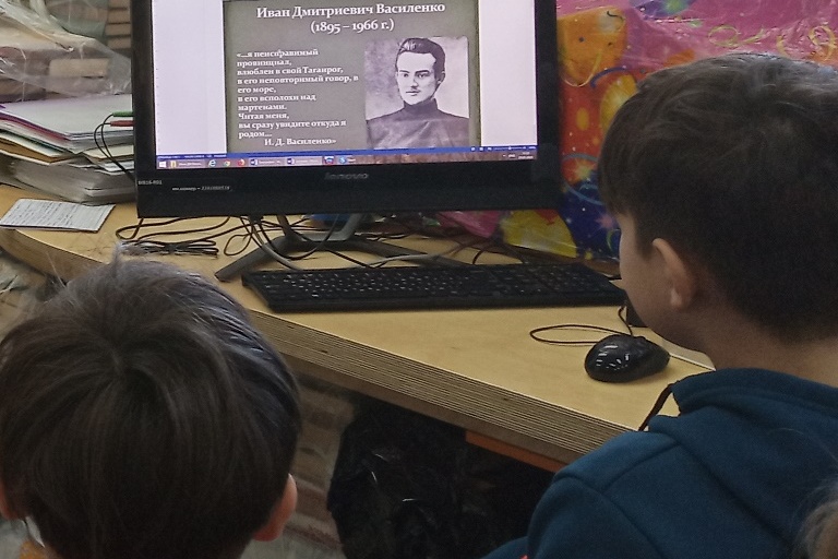 Знакомя пятиклассников школы №43 21 января с творчеством писателя, библиотекари отметили, что все его книги автобиографичные и, часто, писателю не нужно было проявлять фантазию, выдумывая разные эпизоды приключений своих героев, так как детство и юность самого писателя были полны приключений. Например, в книге «Приключения Заморыша» автор подробно рассказывает о своих детских годах в чайной, о разнообразных встречах с её удивительными посетителями, например, играть в шахматы его научил бывший граф, и другими не менее интересными персонажами старого Таганрога.