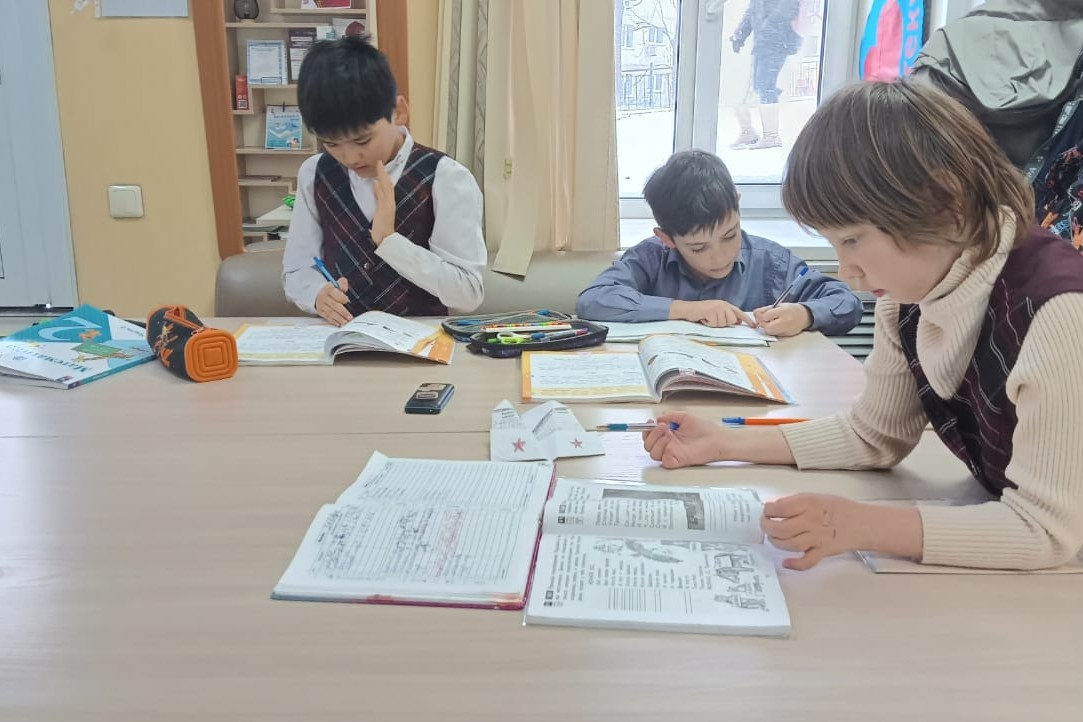 После занятий ребята из начальной школы и среднего звена в стенах библиотеки выполняют домашнее задание, готовят уроки, берут дополнительную литературу для подготовки сообщений и творческих проектов.