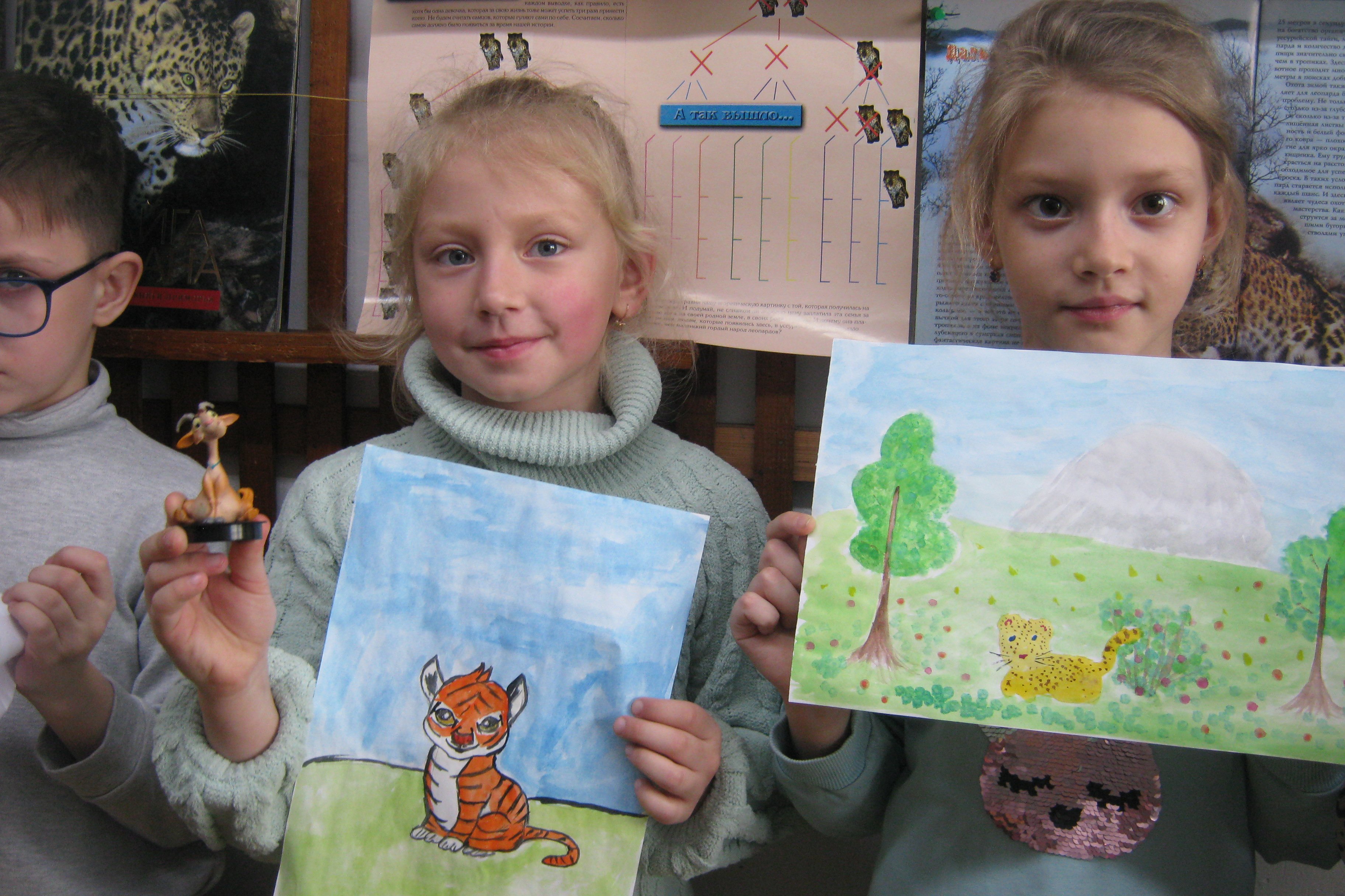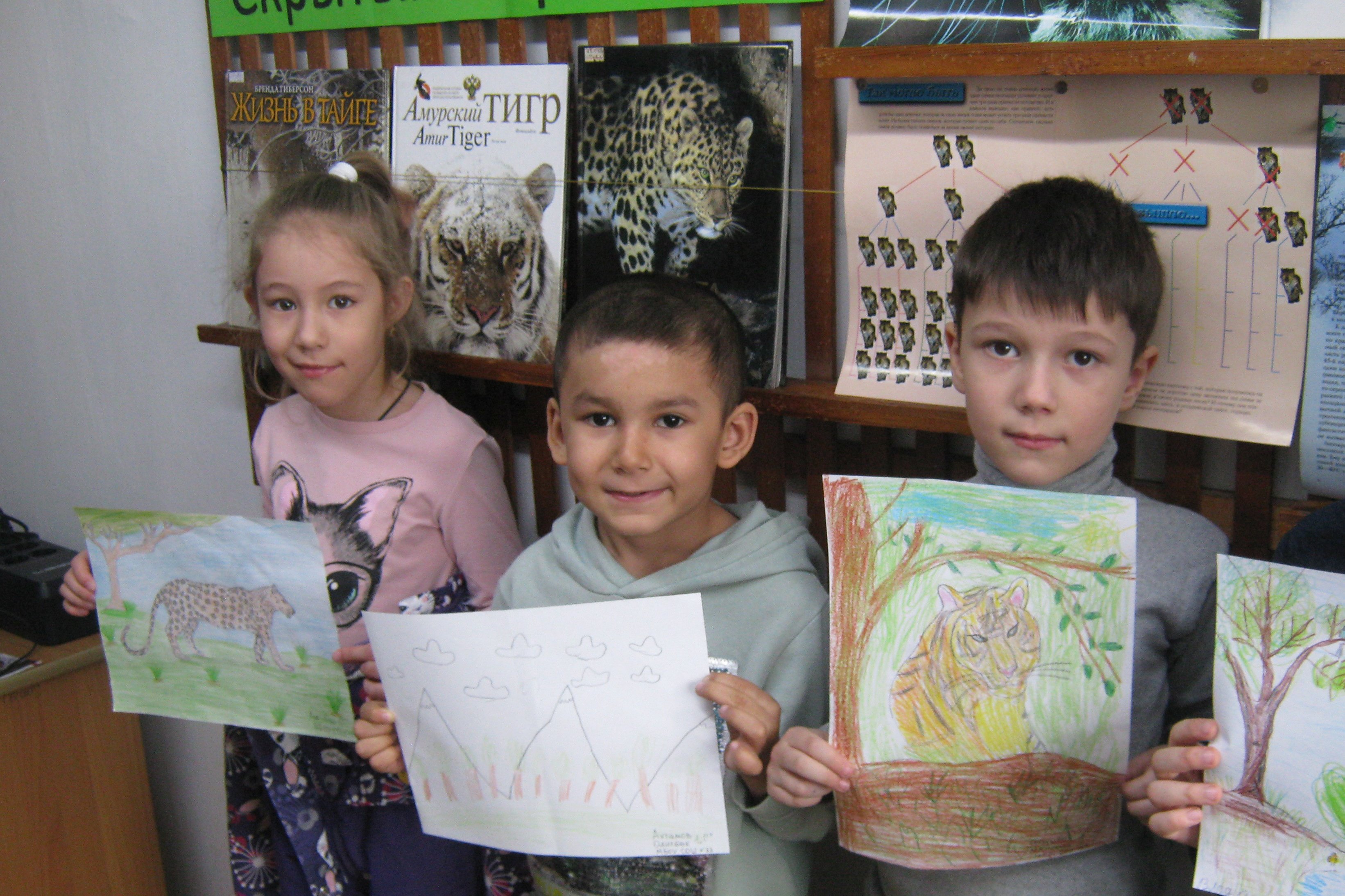 Дети очень эмоционально выразили свое желание помочь красивейшему зверю земли выжить. Они осуждали и вырубщиков леса, и браконьеров, и охотников, которые отстреливают копытных, основную еду дикой кошки. В знак солидарности с леопардом, нарисовали яркие картины редчайшего пятнистого зверя. Кроме того, рисовали и тигра, тигр тоже красивый и грациозный — полосатое совершенство Уссурийской тайги. Мероприятие и детям, и их родителям, и учителю понравилось. Многие остались и записались в библиотеку.