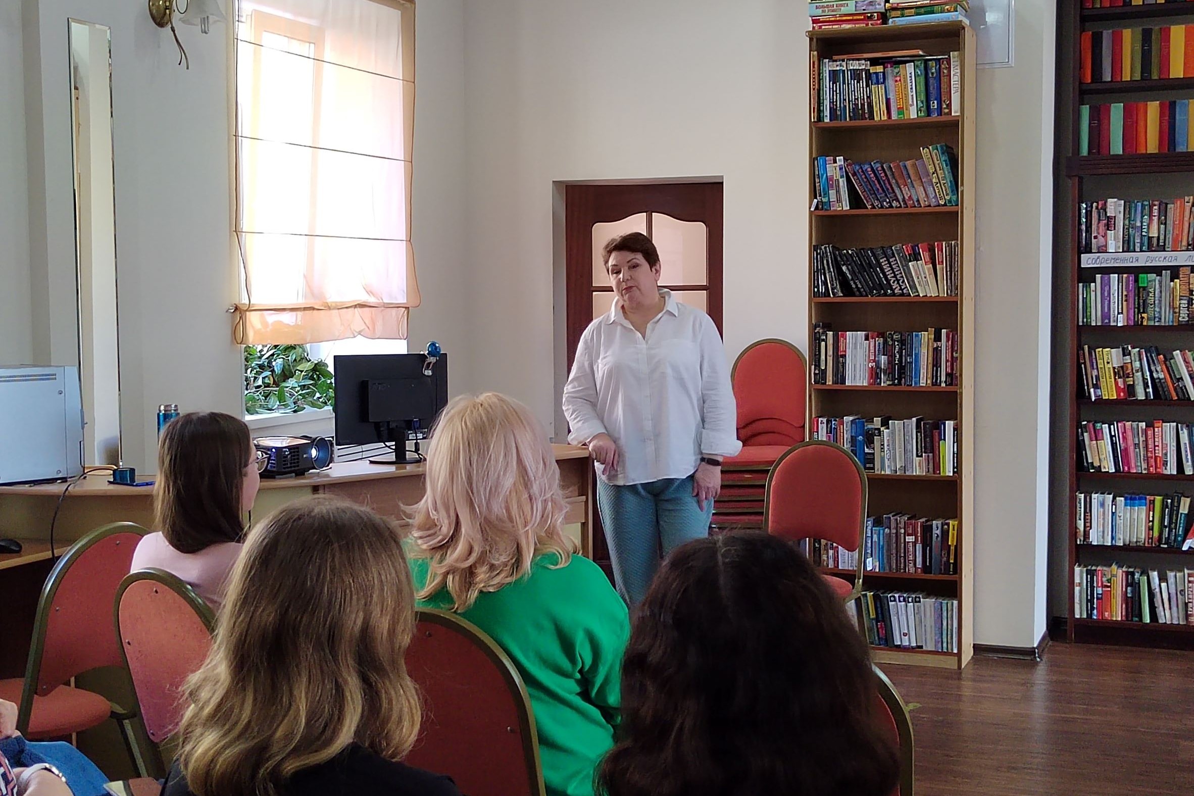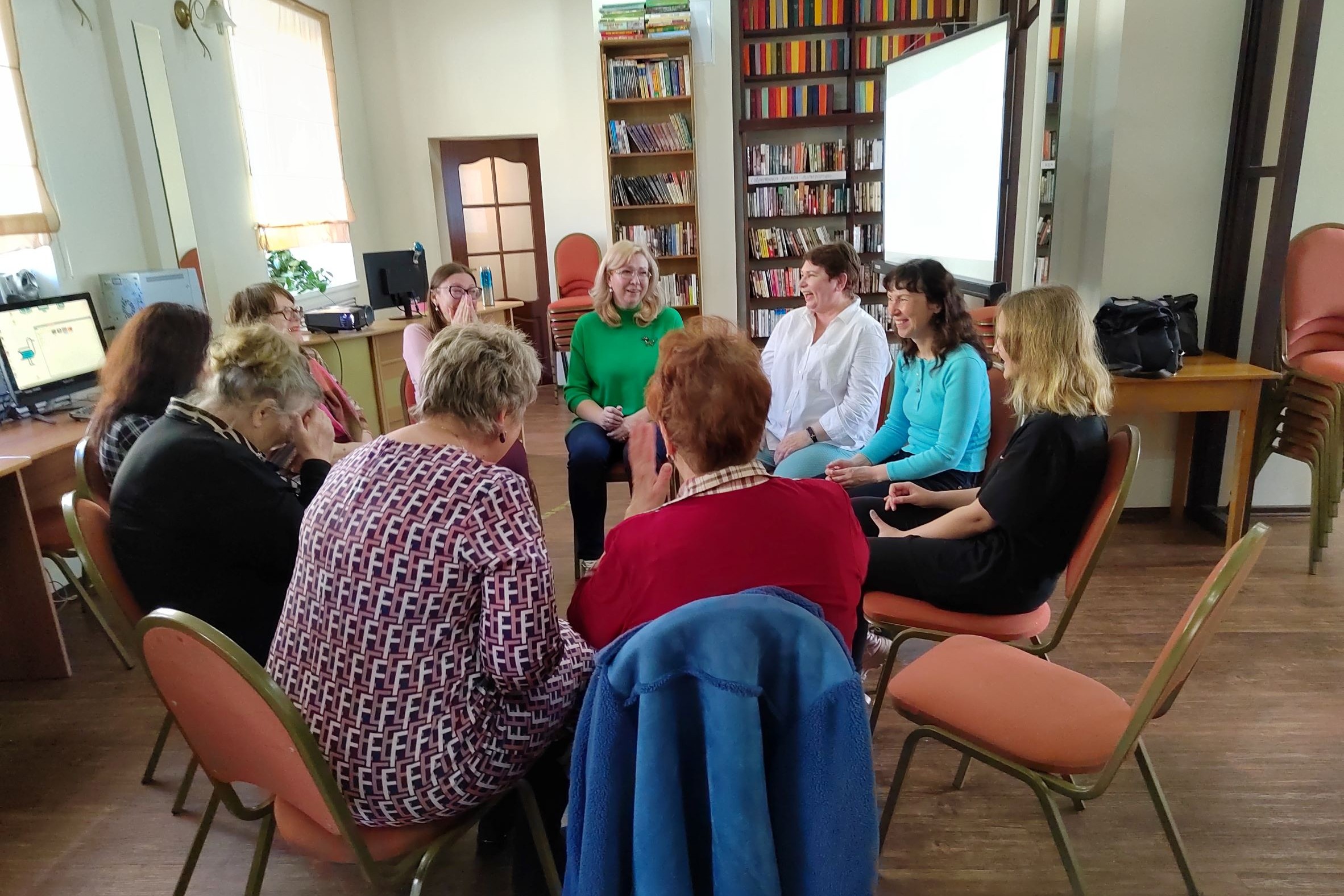 Тренинг по йоге смеха провела тренер Оксана Владимировна Власова для взрослых читательниц библиотеки № 10. Как рассказала тренер, в мире есть уже более 110 школ йоги смеха. Так, в Индии одновременно смеялись 16 тысяч человек.