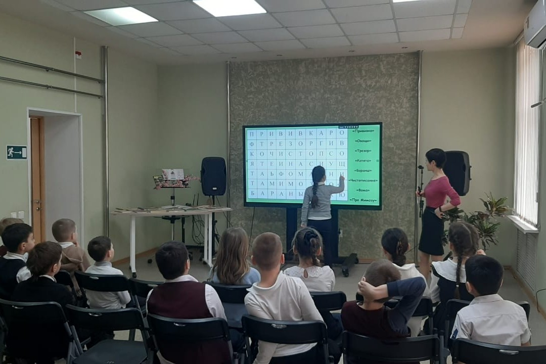 Литературный час «Книжная Вселенная» для учащихся СОШ № 62 состоялся в библиотеке им. Н.Н. Муравьева-Амурского. Юные читатели просмотрели кадры кинохроники, посвященной первому празднику книги, который состоялся в Москве в марте 1943 года. Ребята с интересом смотрели фильм, где они узнавали классиков детской литературы – Агнию Барто, Сергея Михалкова, Самуила Маршака на встречах с читателями-детьми в разные годы празднования, а также познакомились с главной детской библиотекой страны. Отдельная часть встречи была посвящена теме защитников Отечества. Юные читатели слушали рассказы о детях-героях, о животных на войне, декламировали стихотворения о Родине, о воинах, о войне и мирной жизни.