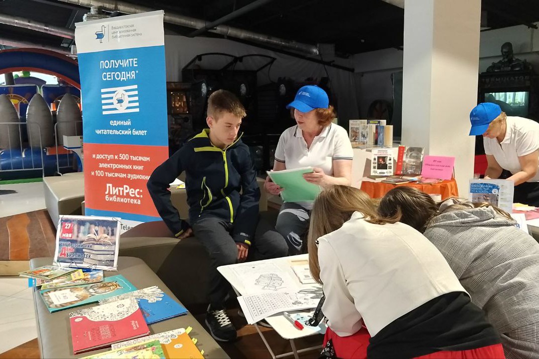 27 мая ТРК «Седанка Сити» литературные игры на Открытой библиотечной площадке МБУК «ВЦБС» были посвящены Общероссийскому дню библиотек. Праздник имеет особое значение не только для причастных к этой профессии людей, но и для обычных читателей и ценителей литературы. День 27 мая был выбран не случайно, ведь именно в этот день основали первую государственную и общедоступную библиотеку России.