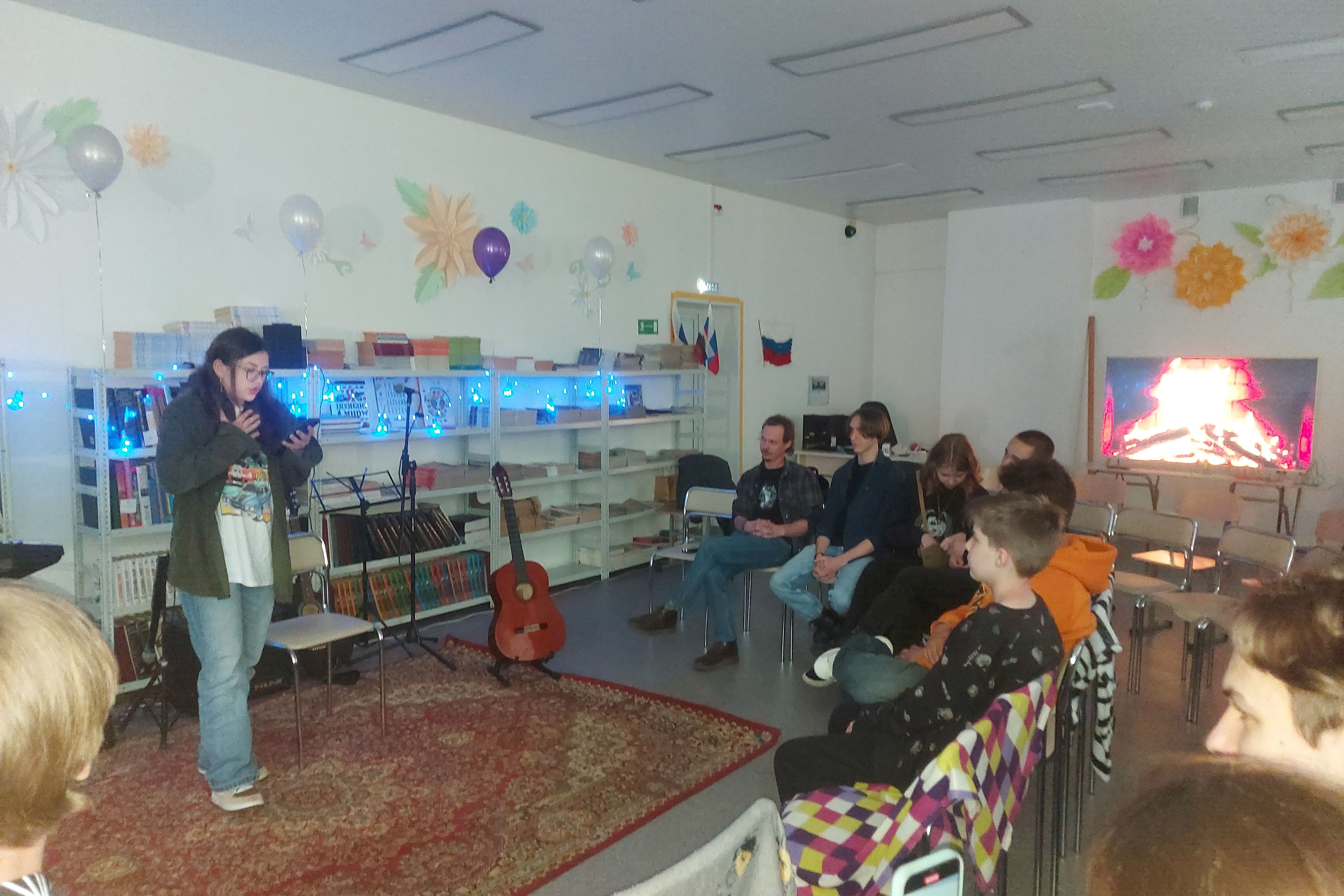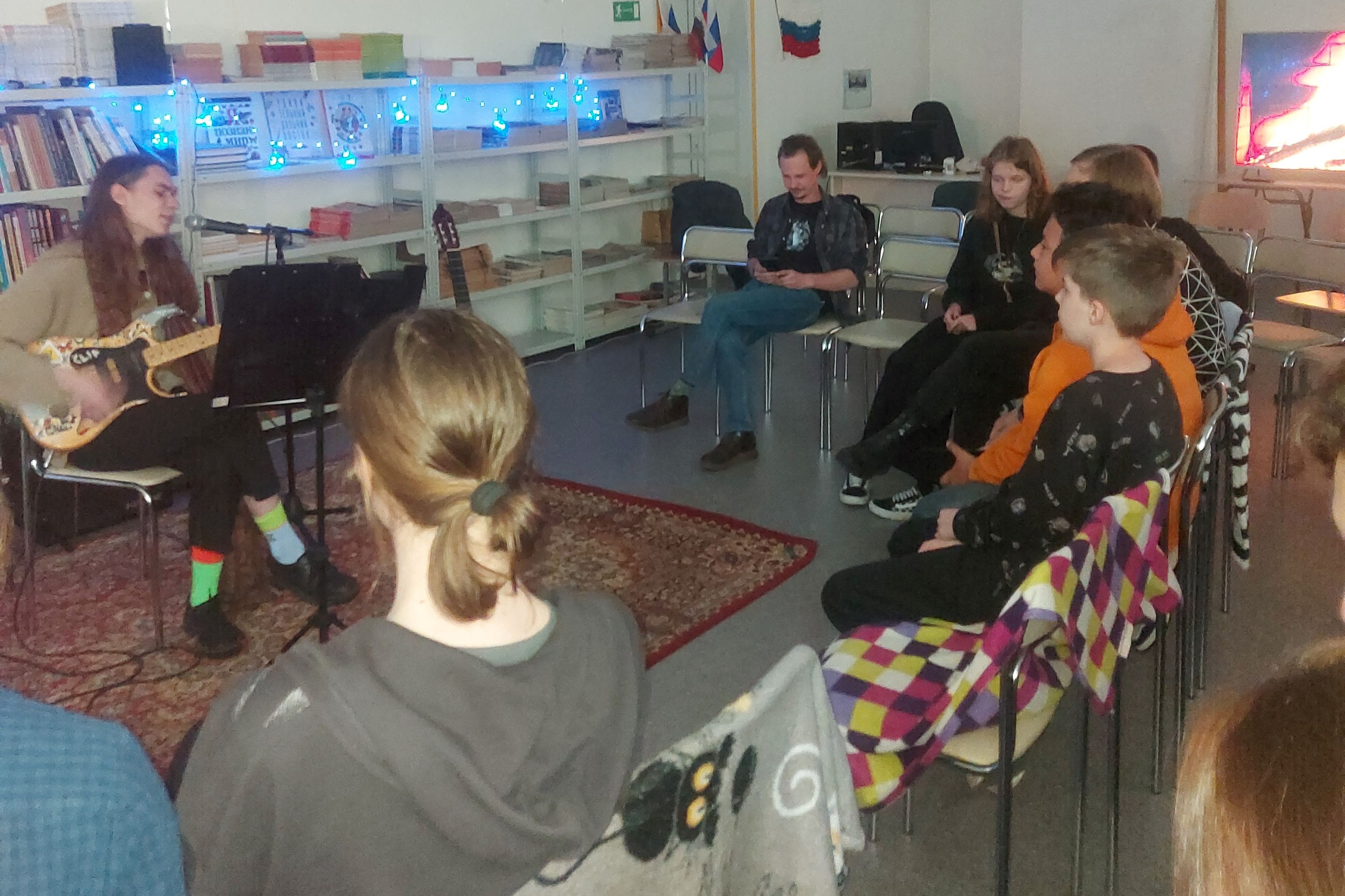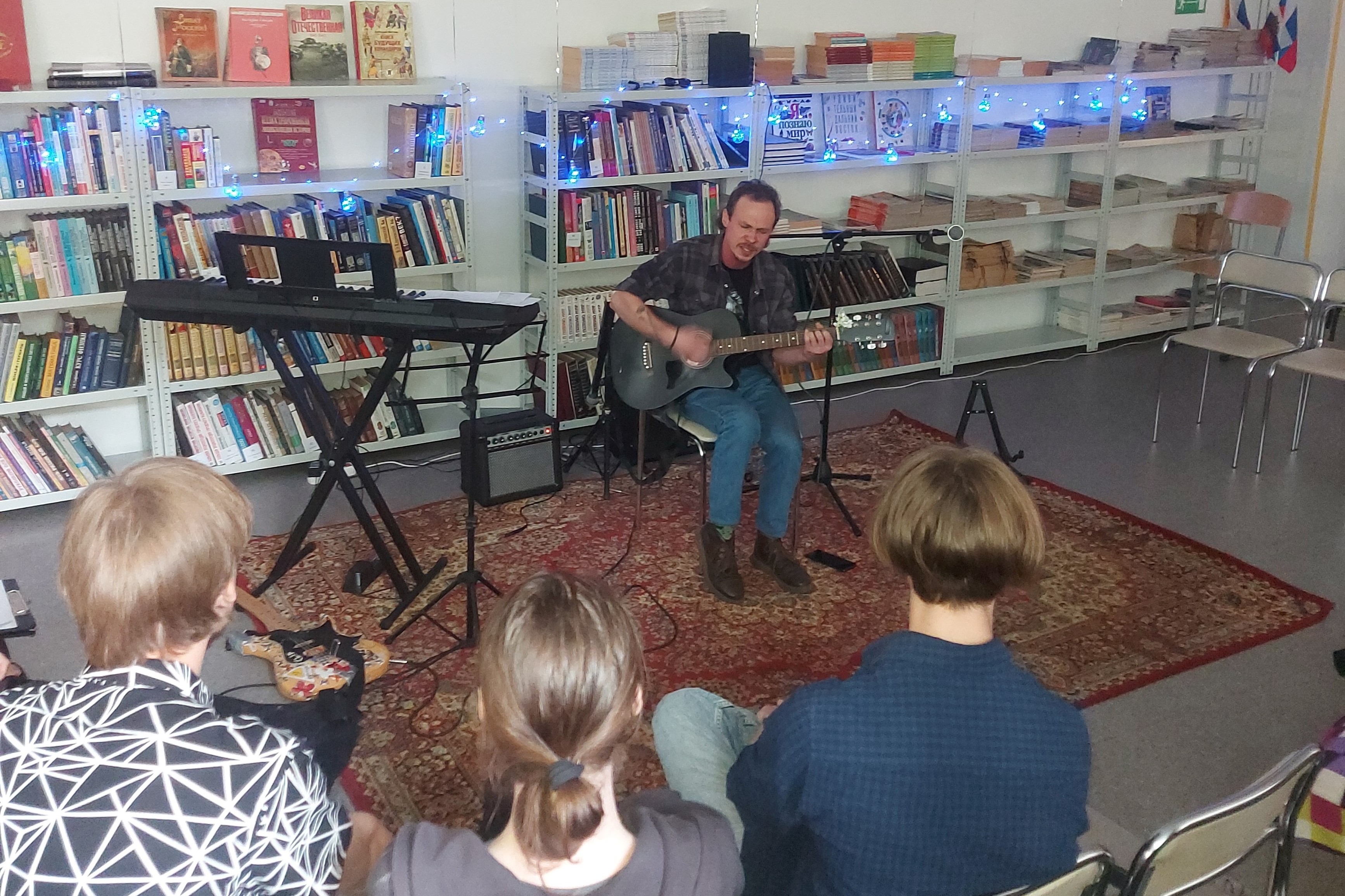 Прозвучала очень красивая песня, написанная самим Матвеем. На встрече прозвучали и стихи. Екатерина Служенко прочитала стихи собственного сочинения. Гости мероприятия также не остались в стороне. Хост Сергей исполнил авторскую песню. Библиотечник удался, время пролетело незаметно! Вечер получился уютным и атмосферным благодаря живому общению исполнителей с залом. Зрители тепло благодарили артистов за подаренные эмоции и хорошее настроение. Желали музыкантам успехов в творчестве и приглашали ещё раз в библиотеку.