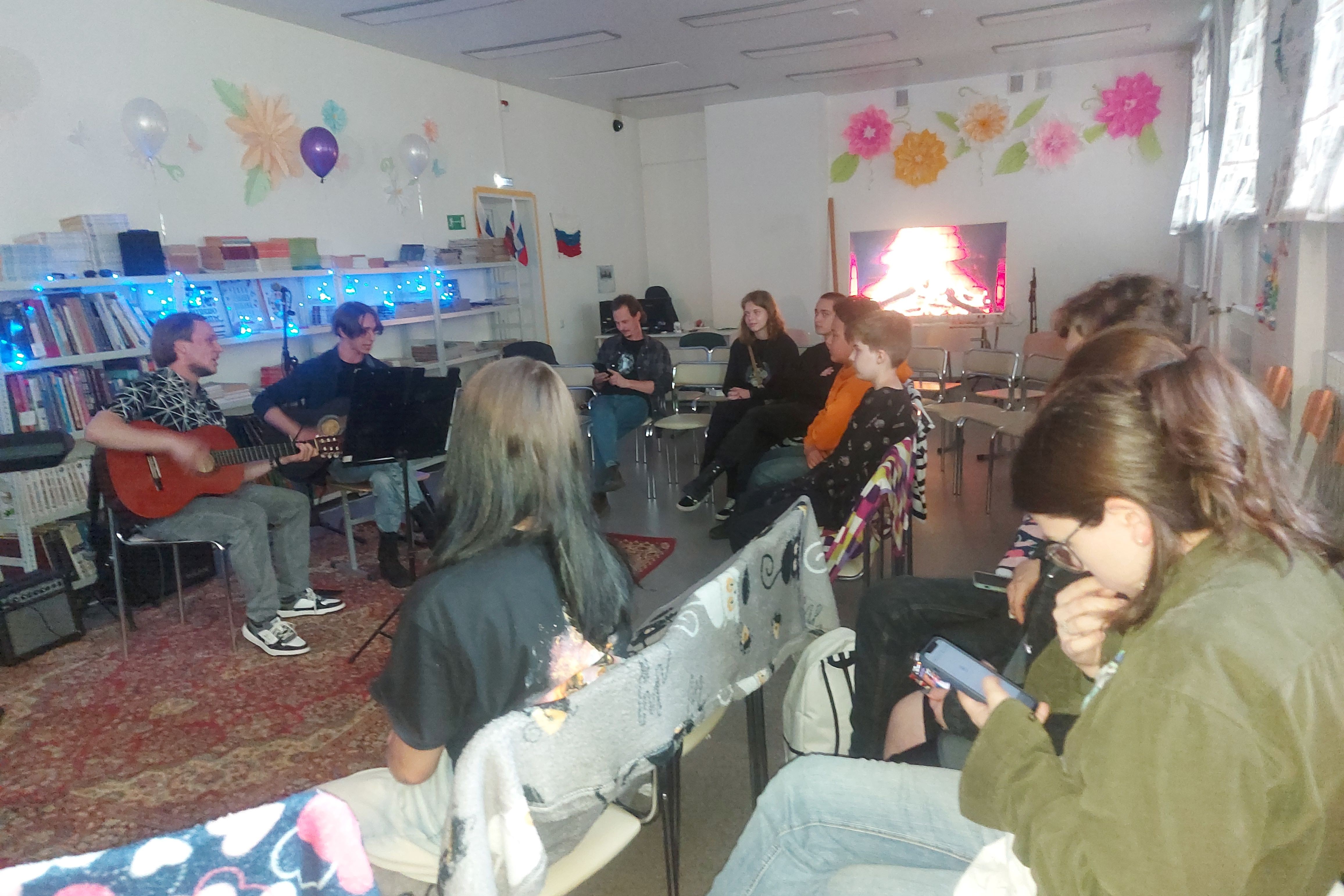 На вечере происходило живое общение в кругу друзей и единомышленников, царила особая творческая атмосфера. Прозвучали лирические песни из репертуара А. Барыкина, В. Цоя, В. Кузьмина и других известных авторов в исполнении Матвея Сокольского (студент СПбГМТУ/ДВФУ), Ариадны Татарниковой (студентка ПККИ), Грядунова Владислава.