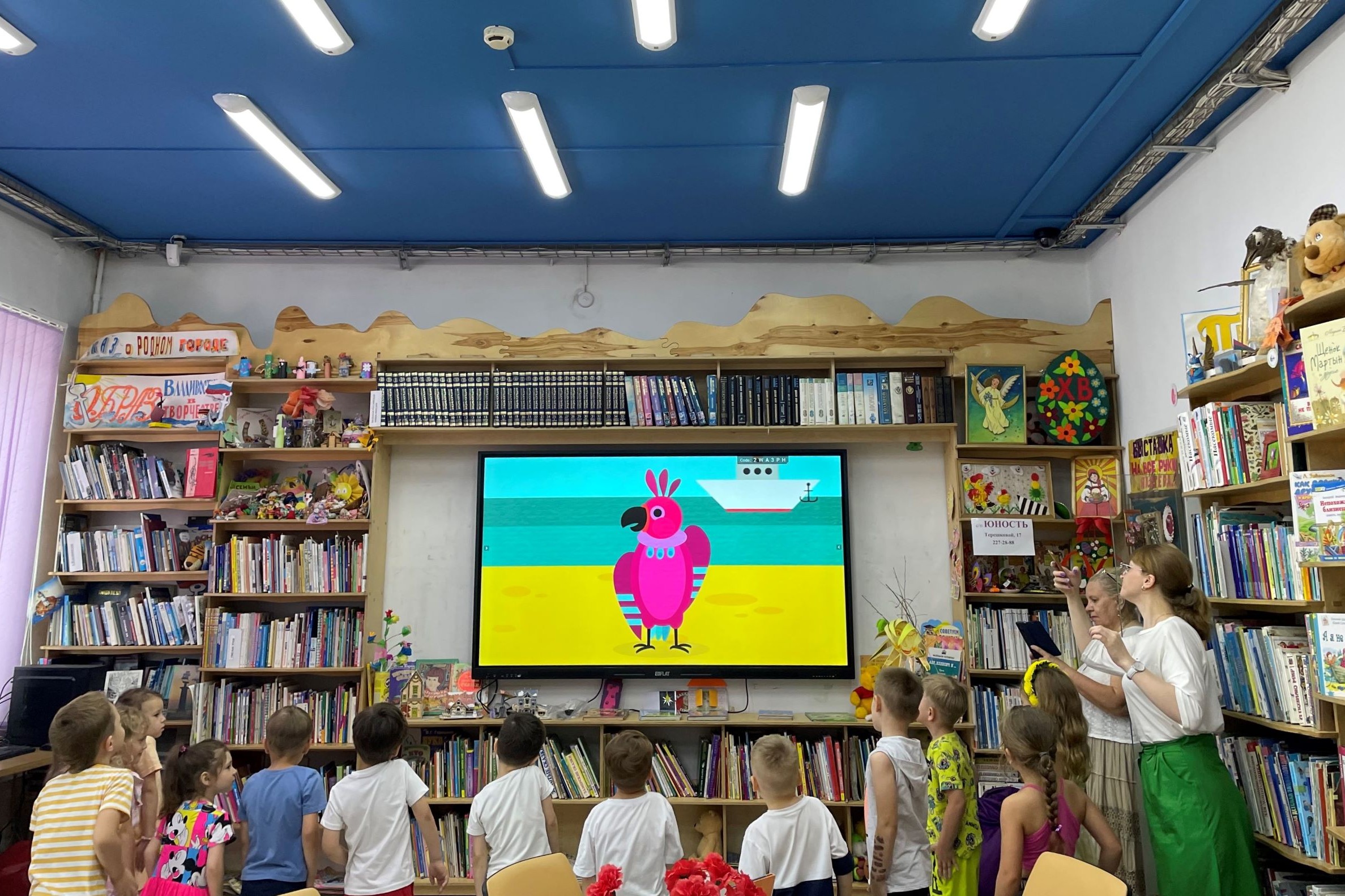 Пели «Песенку друзей» Сергея Михалкова и смотрели на большом экране песенки из мультфильмов про дружбу и взаимопомощь. Между прочим, дружить умеют не только люди, но и животные.