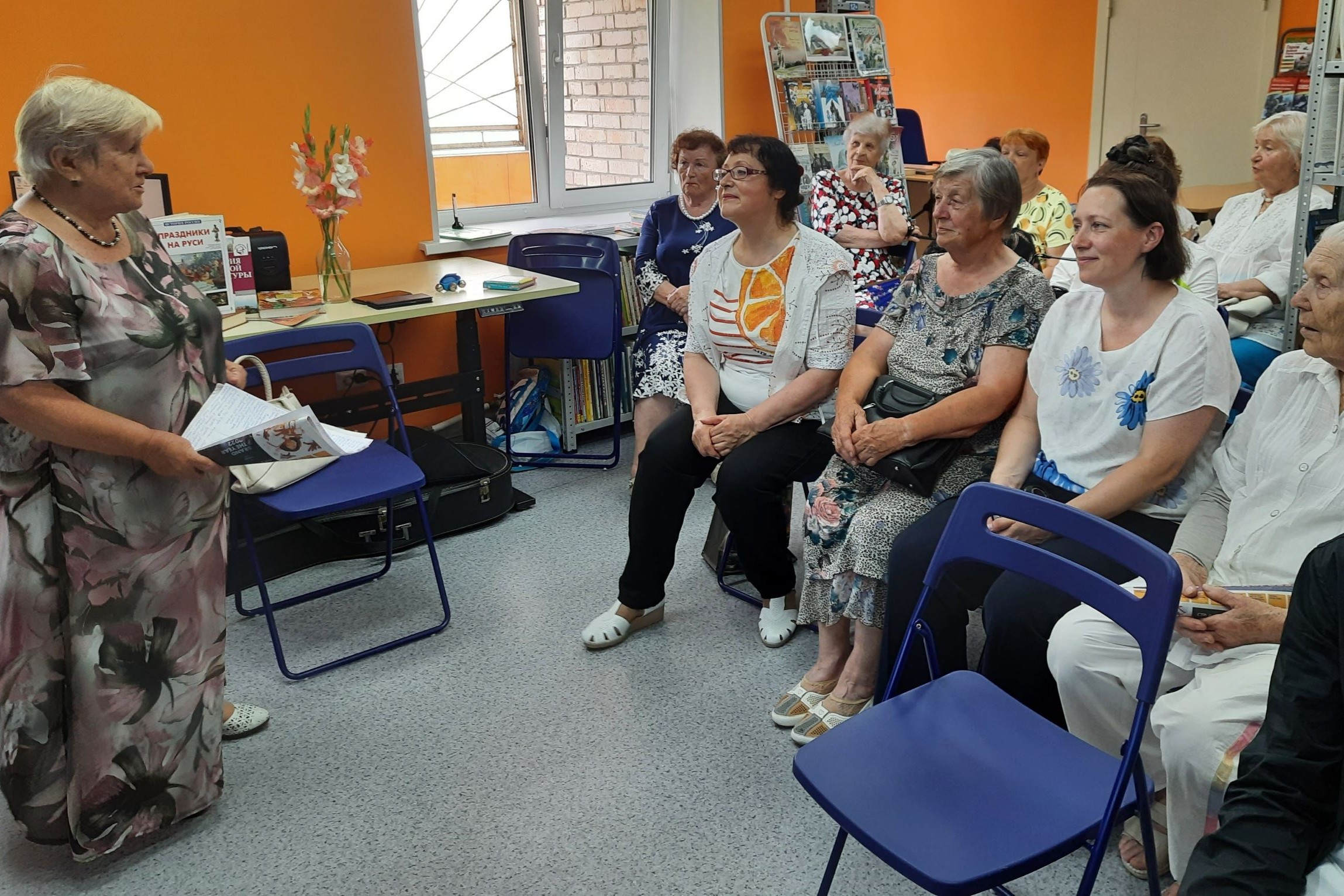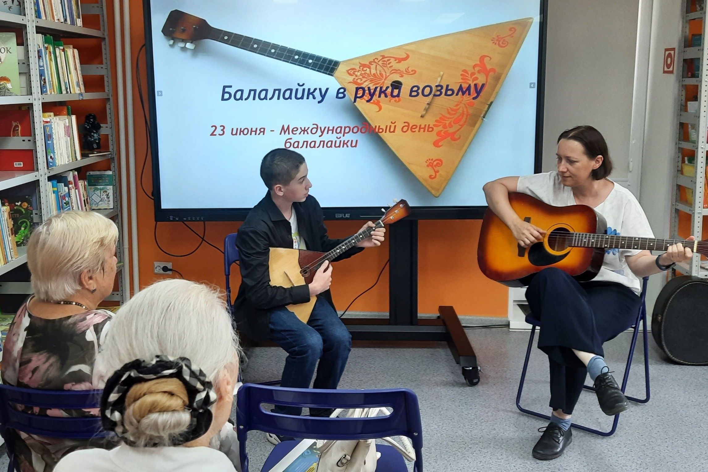 28 июля в библиотеке №20 в рамках программ «Марафон культурных событий», «Ценности России. Культурный код (тайны музыки)» для ветеранов-педагогов Советского района из клуба серебряного возраста «Прайм – тайм: после 50 жизнь только начинается» состоялся час фольклора «Балалайку в руки возьму».