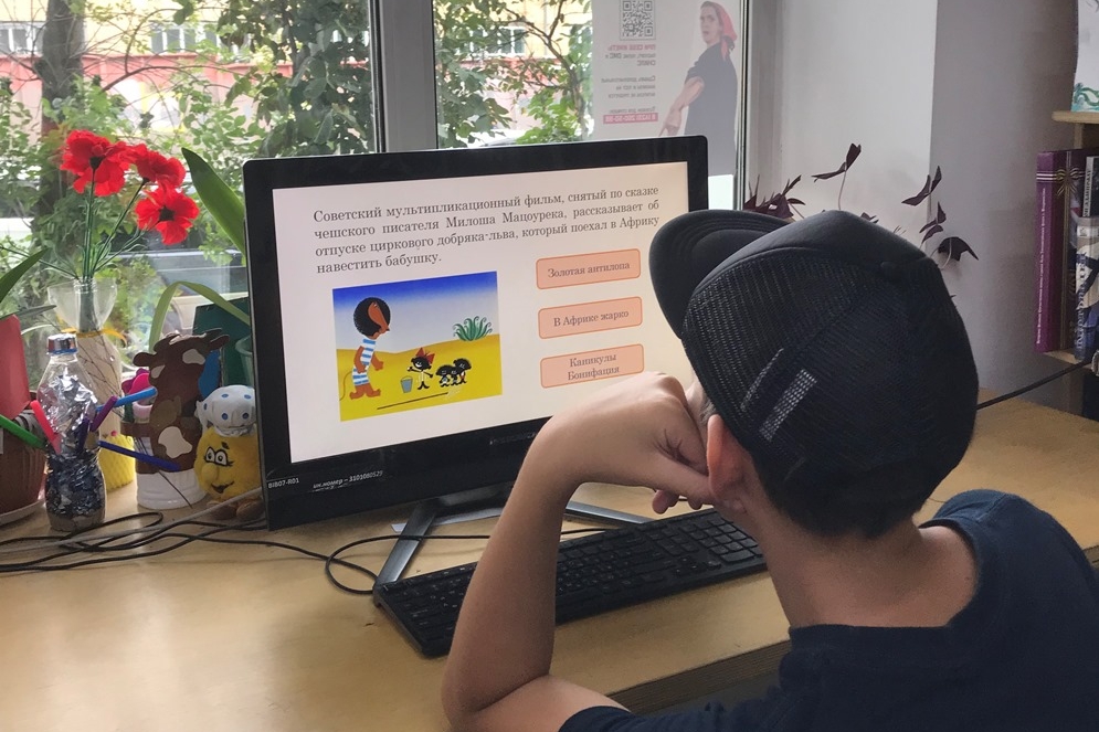 26 августа, накануне Дня российского кино, юные читатели детской библиотеки №7 вспоминали сказки, рассказы и стихи, которые попали с книжной полки на экран. В помощь играющим была оформлена выставка «Мультфейерверк», на ней нашли свое место книги, по которым сняты мультфильмы.