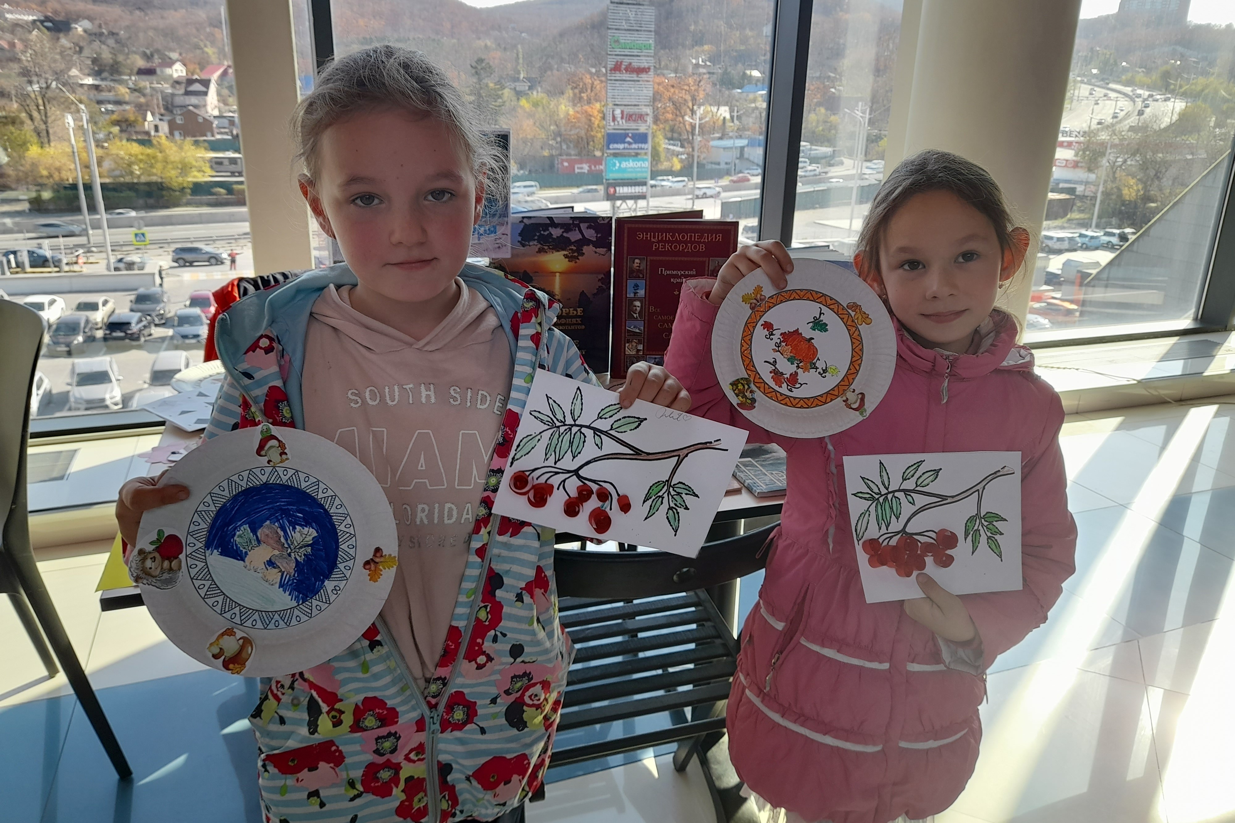 А маленьких участников литературных игр накрыла творческая волна: ребята делали лису и чайку применяя искусство оригами, с помощью бумагопластики – ежика, а с помощью аппликации изготавливали памятные тарелки «Я люблю Приморье» и с осенними сюжетами. Девочки «плели» венок из осенних листьев, чтобы стать «Королевой осени».