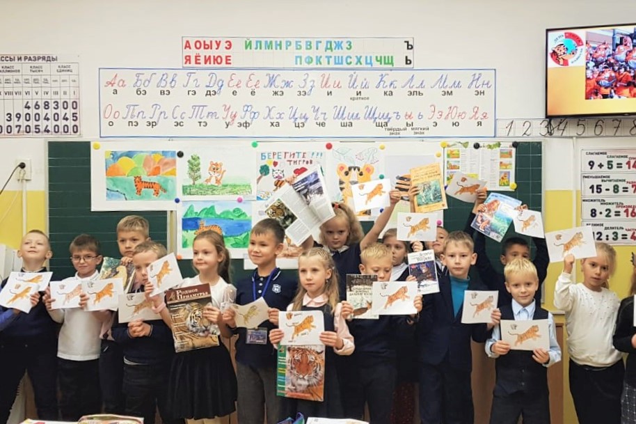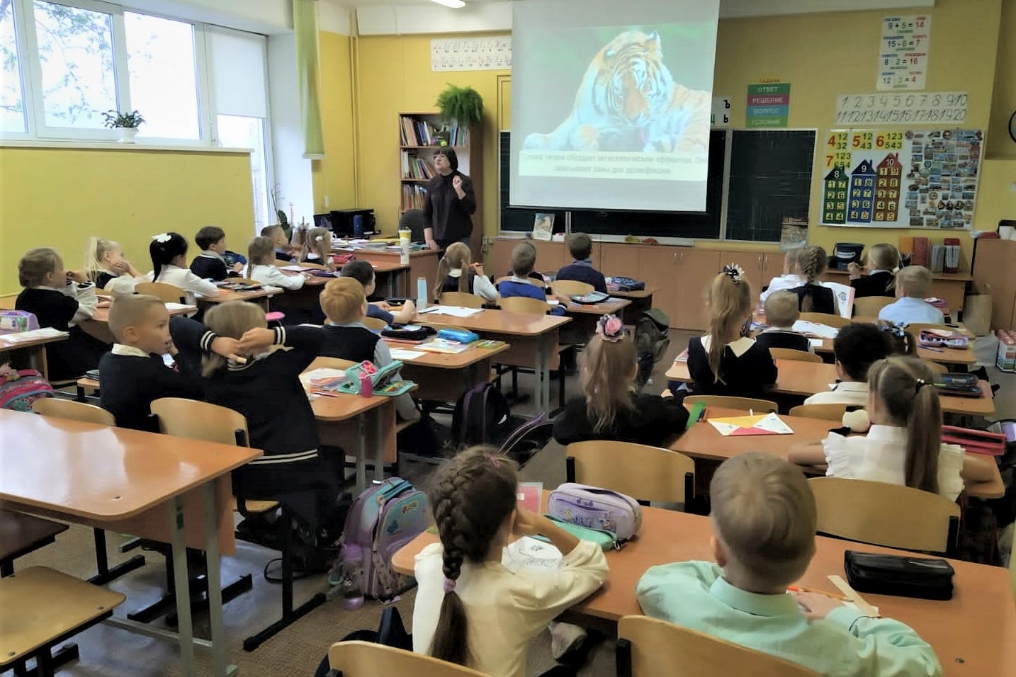 26 октября в 1 «В» и 1 «Г» классах МБОУ «СОШ № 80» библиотекой № 11 организованы эко-уроки, на которых ребята получили разнообразные знания по такой интересной теме, как тигроведение. Они узнали о том, сколько амурских тигров в настоящее время осталось в дикой природе, о размерах, особенностях окраса и поведения хозяина тайги.