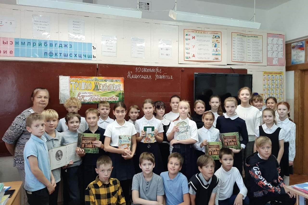 В 4 «Б» классе СОШ № 50 проведен урок истории «Встречи в тайге», организованный библиотекой № 12. Школьники узнали, что Владимир Клавдиевич отдал изучению Дальневосточного края 30 лет своей жизни, внес крупный вклад в географию, ботанику, зоологию, орнитологию, ихтиологию и этнографию, рассказала о родителях писателя, его детстве, юности, экспедициях, краеведческой и литературной деятельности. Арсеньев для очень многих читателей заново открыл Дальний Восток, он дал нам незабываемое описание края, рассказал обо всем, что увидел своими глазами. И мы, читая его книги, вместе с ним путешествуем по уссурийской тайге, встречаемся с лесными охотниками, слушаем их рассказы. На его исследования и сегодня ориентируются геологи и этнографы, археологи и просто путешественники, которые решили открыть для себя этот дивный край России.