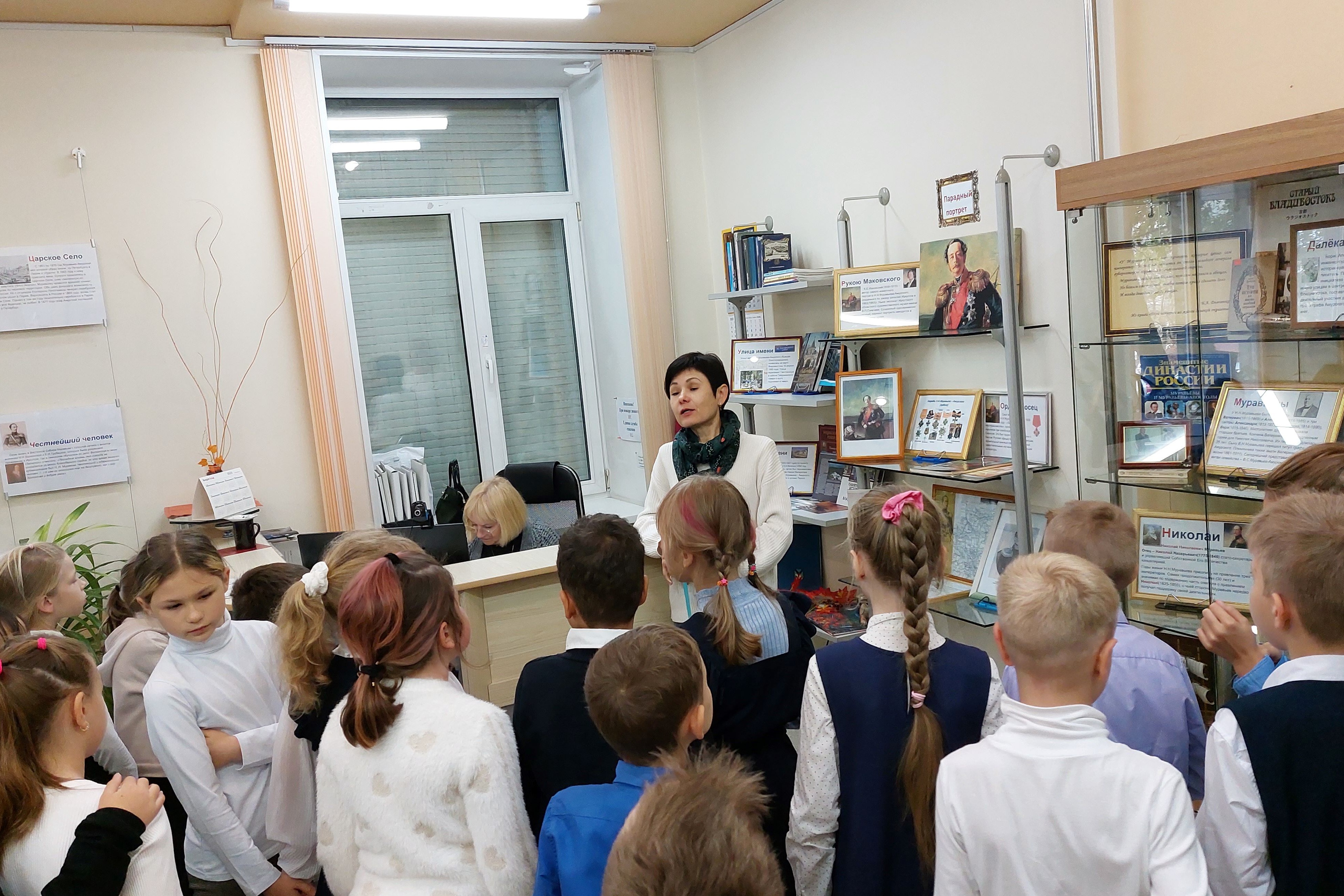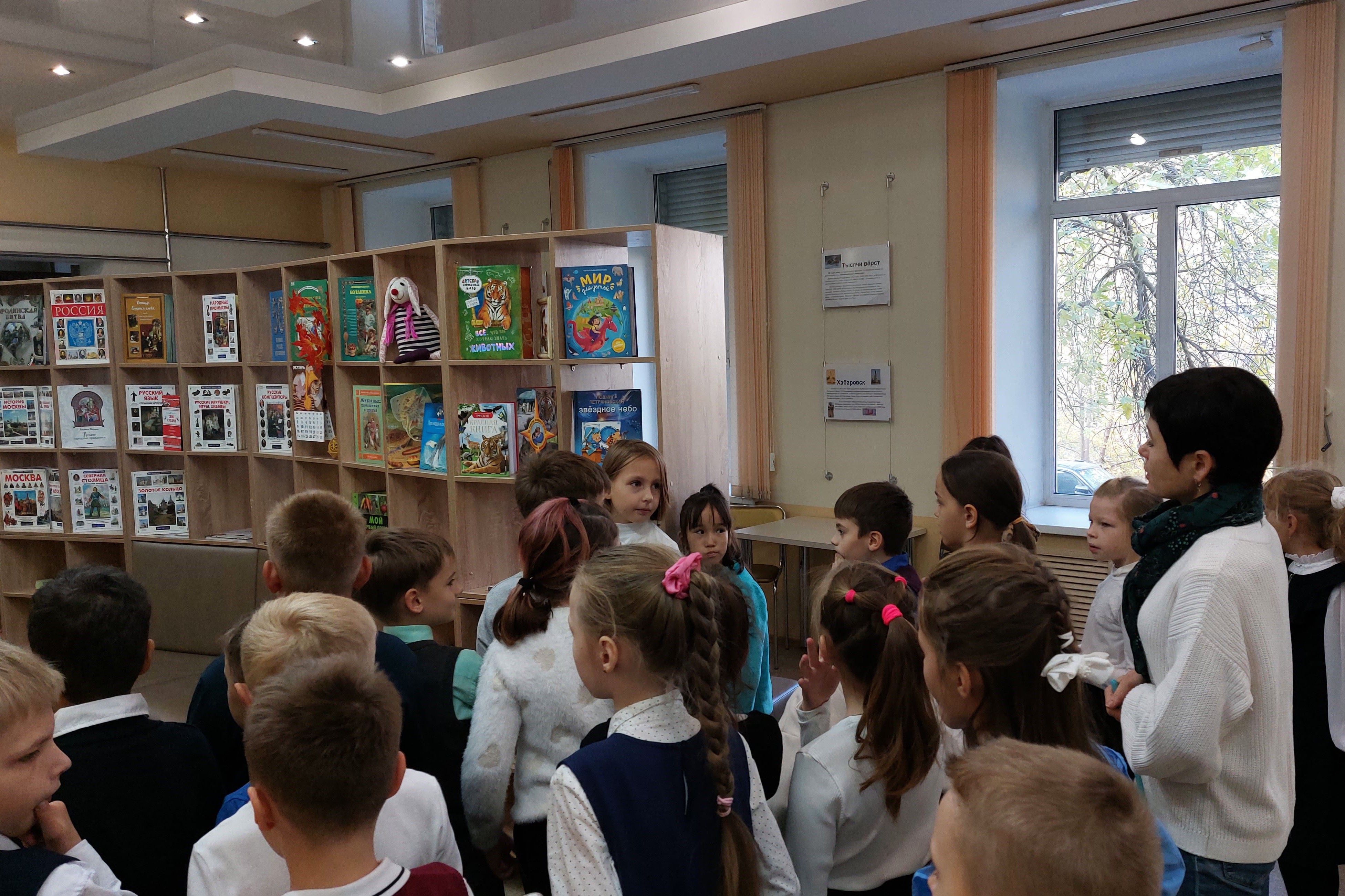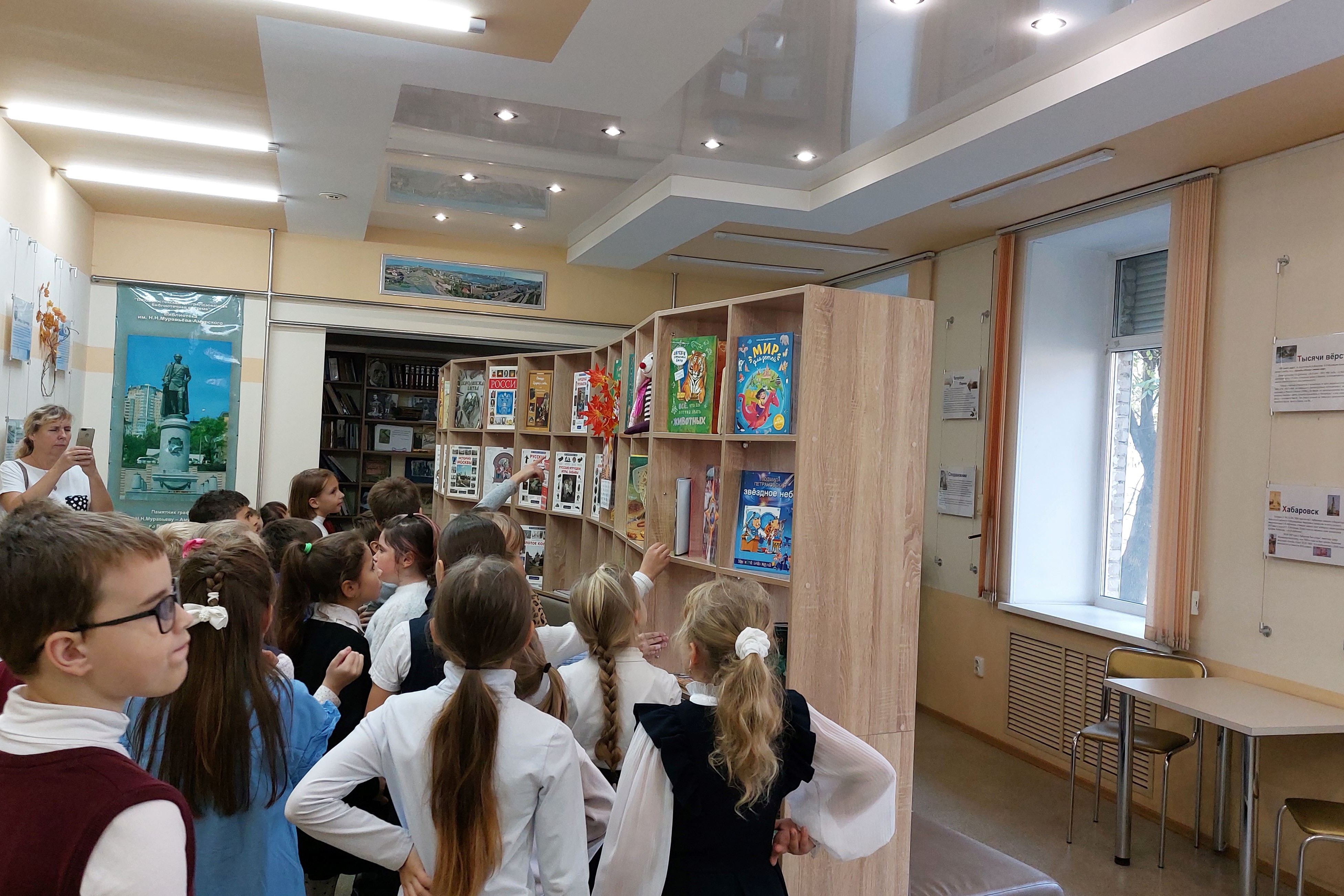 26 октября познавательное мероприятие и экскурсия организована для школьников «Центра образования «Ступени» в библиотеке им. Н.Н. Муравьева-Амурского. Для них это первое знакомство с библиотекой, обновленной по программе модернизации. Ребята просмотрели электронную презентацию, посвященную памятным датам и праздникам, отмечаемым в октябре – День учителя, День отца в России, Всемирный день хлеба, День образования Приморского края. Наибольший интерес и отклик вызвало виртуальное путешествие по приморским достопримечательностям – реке Уссури, островам Японского моря, знакомство с обитателями Дальневосточного морского заповедника. После беседы школьники совершили еще одно путешествие – по залам библиотеки и открыли для себя интерактивные возможности для отдыха и увлекательного обучения. Огромный восторг вызвала у ребят интерактивная песочница, позволяющая познавать мир руками, стена с движущимися картинками, книги с дополненной реальностью в формате 3D и 4D, и даже новые стеллажи со встроенными мягкими креслами для чтения и отдыха. Для ребят появились разнообразные настольные игры, а по субботам – в библиотеке проводится бесплатный мастер-класс по робототехнике.