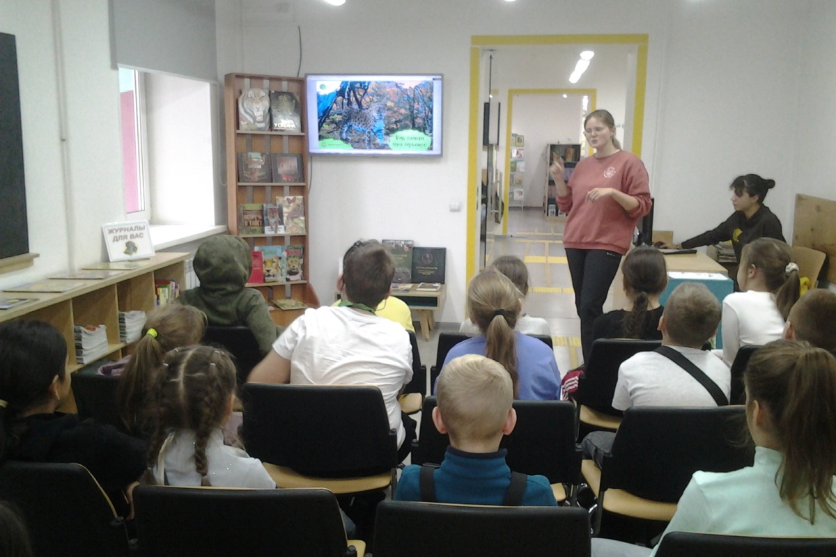28 октября для учеников пришкольного лагеря СОШ № 6 в детской библиотеке № 5 (ул. Леонова, 21) провели беседу-игру ведущие специалисты по экологическому просвещению ФГБУ «Земля леопарда» Дарья Сергеевна Мушкарина и Виктория Дмитриевна Иванова. Экологический час под названием «Большой кошкин дом» был посвящён дальневосточному леопарду. Встреча проходила в интерактивном формате.