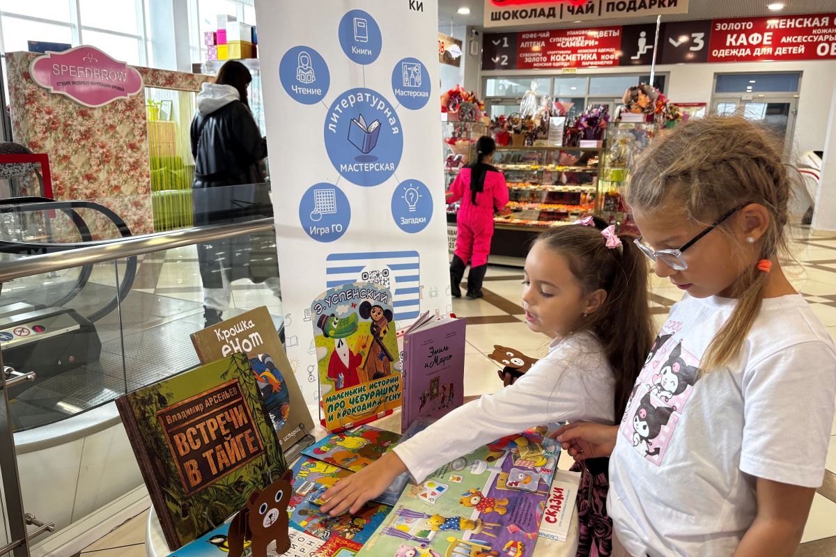 У открытой выставки проходили беседы о книгах. Но это были не просто беседы! На красочные книги детских писателей обращали внимание постоянно проходившие мимо посетители торгового центра и они, заинтересовавшись, листали их, а также интерактивные издания, книги с тактильными вставками, звуковые книги, где можно было услышать голоса птиц и зверей. Как всегда, самый большой интерес вызвала книга Владимира Арсеньева «Встречи в тайге», а малыши с восторгом изучали книгу про плюшевых медвежат, с широко раскрытыми глазами нажимали на кнопки и тянули за клапаны, понимая, что книга может быть настоящим чудом.