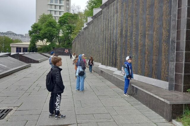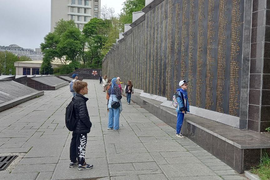 У вечного огня на пешеходной экскурсии «Победа пришла потом…» ребята узнали о мужестве и самоотверженности наших солдат, и о подвигах экипажа легендарной подводной лодки С-56, и, конечно, о юнгах «огненных рейсов». Дети не просто слушали о подвигах героев, а прикасались к истории ладонями: чувствовали прохладу гранита на мемориалах, вглядывались в детали старинных зданий на Светланской и сравнивали их со старыми фотографиями. Такое объединение теории с практикой позволило не просто узнать, а прочувствовать связь поколений. Рассказы о бесстрашии медсестры Марии Цукановой, в экскурсии «Образы героев в городском искусстве по улице Светланской», или героизме Николая Вилкова во время Советско-японской войны перестали быть далекими фактами — они обрели плоть и кровь здесь и сейчас, пробуждая в юных сердцах искреннюю гордость.
