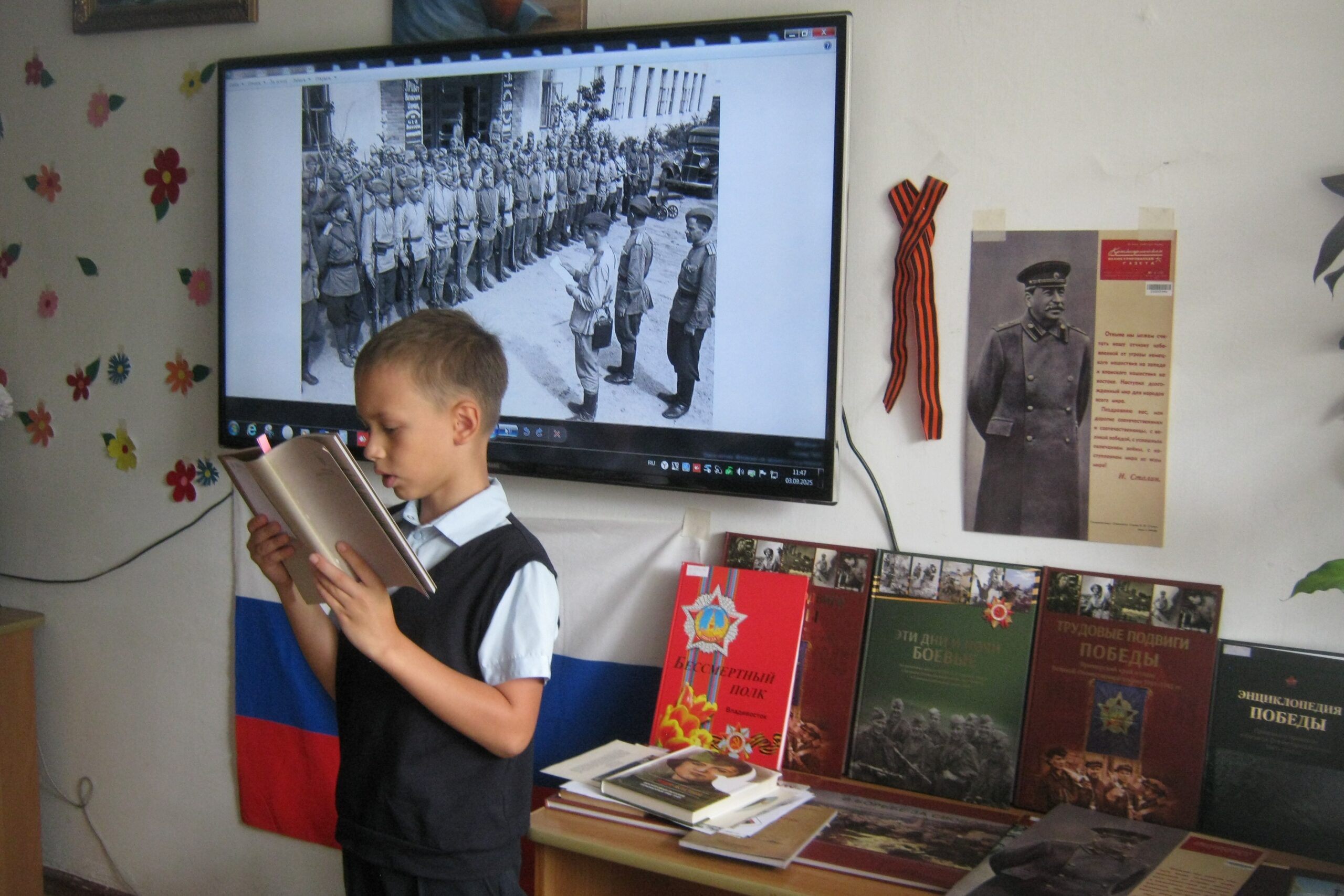 В первые дни нового учебного года библиотеками организованы для школьников часы мужества, приуроченные к Дню окончания Второй мировой войны (3 сентября). Ключевую роль в этой Победе сыграл Советский Союз и его храбрые воины: они сражались не только за свою Родину. Советские солдаты гнали врага до самого Берлина, изгоняя его с территорий других государств, захваченных нацистской Германией и ее союзниками.