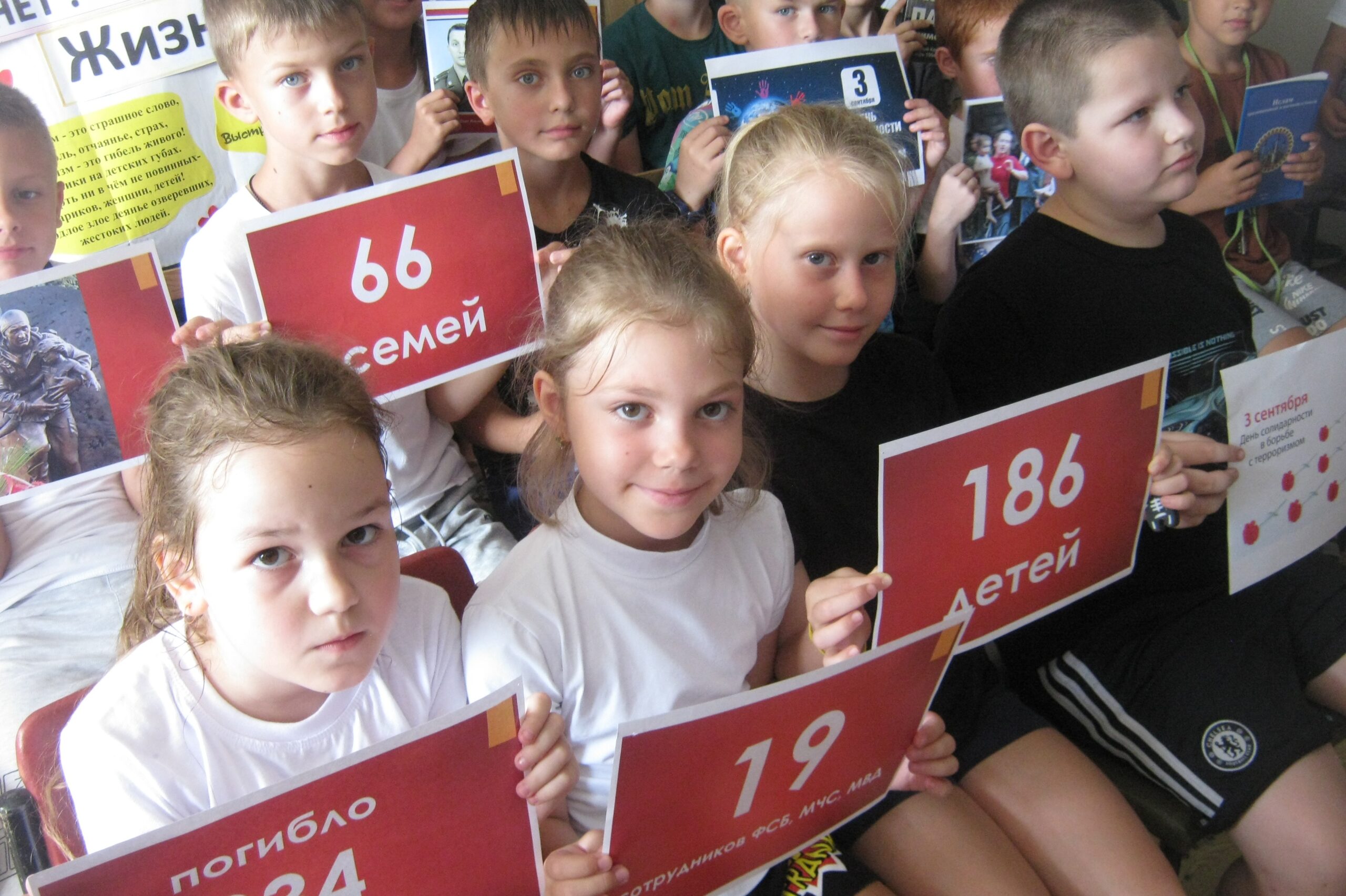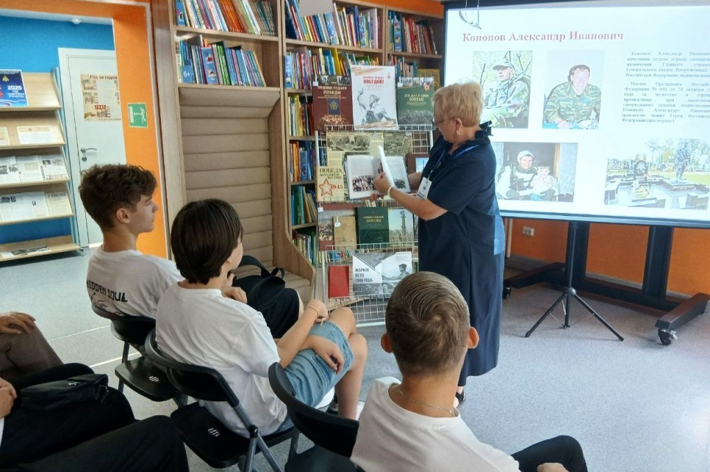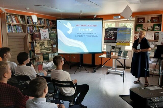 Для 5-6 классов МБОУ СОШ № 7 сотрудники библиотеки показали документальный фильм — интервью с Русланом Аушевым, Героем Советского Союза из Ингушетии. Именно ему выпало войти в школу Беслана 2 сентября 2004 года и вступить в переговоры с боевиками, взявшими в заложники более 1100 человек. Восьмиклассникам МБОУ «СОШ №58», пришедшим в этот же день в библиотеку, подготовили презентацию «Приморцы – Герои России, участники контртеррористических операций (КТО), специальной военной операции (СВО)».