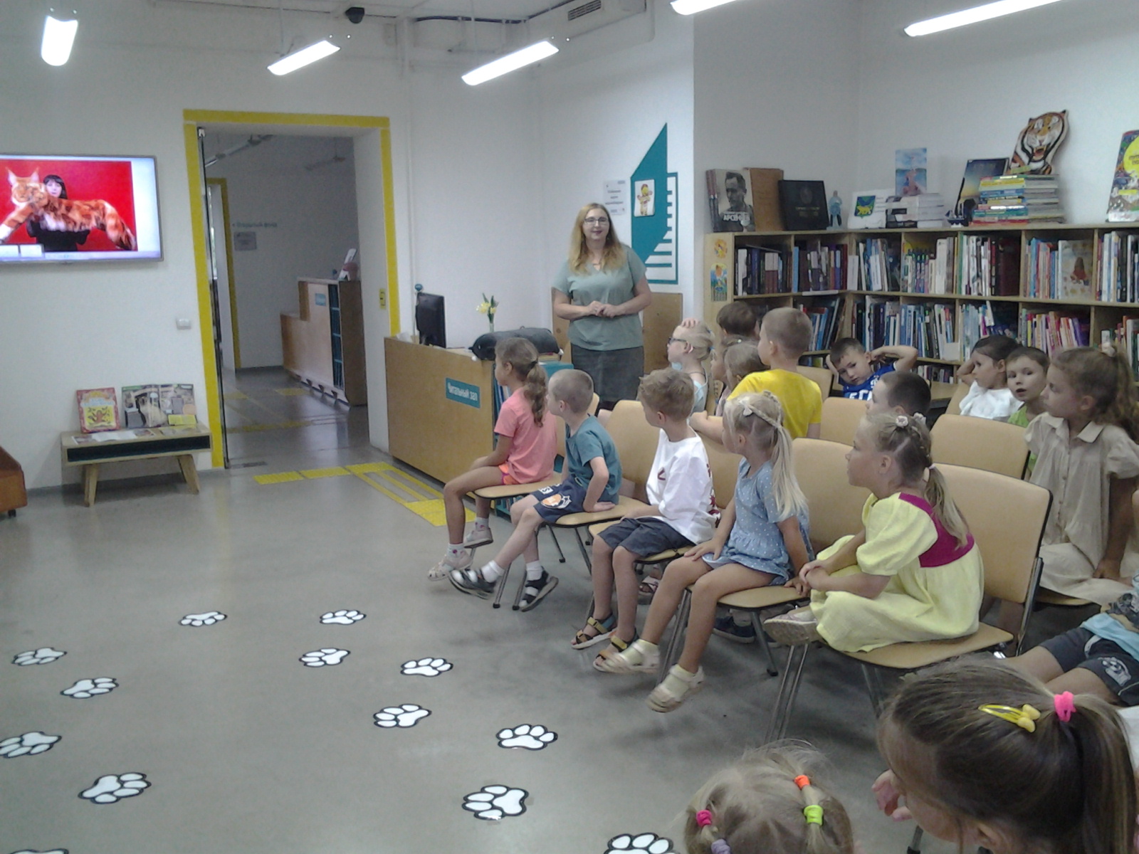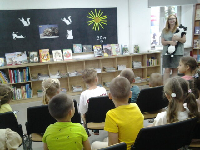 7 августа детская библиотека № 5 (ул. Леонова, 21) организовала для воспитанников МБДОУ «Детский сад № 17» познавательный час «Мурлыкающие истории».