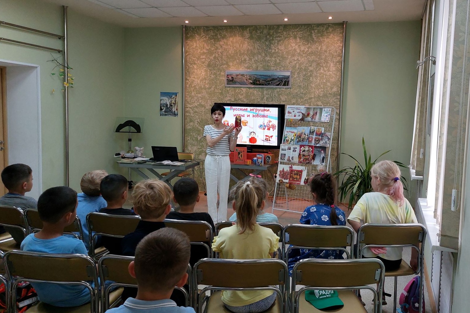 В библиотеке имени Н. Н. Муравьева-Амурского для детей из оздоровительного лагеря МБОУ СОШ № 62 состоялся фольклорный час «Русские игрушки, игры и забавы», посвященный знакомству с миром детства наших предков. Это уже не первое мероприятие, организованное в рамках проведения в нашей стране Года народного искусства и нематериального наследия.