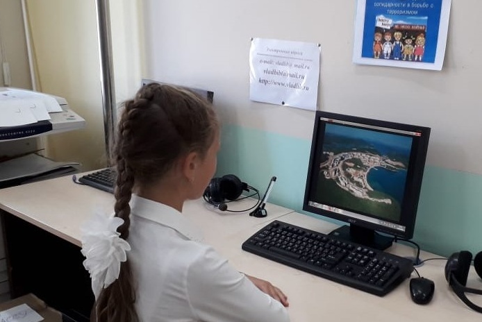 Патриотический час «Мы за мир!», посвященный Дню солидарности в борьбе с терроризмом состоялся в библиотеке им. Н.Н. Муравьева-Амурского. Учащиеся школы № 62 просмотрели электронную презентацию, посвященную событиям, связанным с днем 1-го сентября. Дети узнали не только о празднике Дне Знаний, который отмечается в нашей стране с 1984 года, но и праздновании Нового года во времена Московской Руси, о дате из народного календаря – дне Феклы-свекольницы, о начале трансляции детской телепередачи «Спокойной ночи, малыши», на которой выросло не одно поколение ребят. Школьники узнали и о трагических событиях, связанных с этим днем – начало Второй мировой войны и захват заложников на школьной линейке в городе Беслане. Школьники познакомились с историей, когда террористы захватили в заложники учеников, учителей, родителей и удерживали их в нечеловеческих условиях, пока они не были освобождены бойцами специального подразделения. Ребята познакомились с памятниками, посвященными тем трагическим событиям – «Древо скорби» и «Город ангелов» в Беслане, погибшим бойцам, детям и мирным жителям, а также узнали о мероприятиях по сохранению памяти тех страшных событий. Ребята просмотрели антитеррористические видеоролики, а также прослушали стихи о дружбе, о мире, о России.