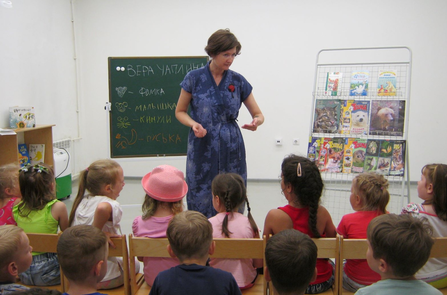 5 августа воспитанники детского сада №80 знакомились в библиотеке №8 с историями из книги-юбиляра «Мои питомцы». Обезьянка Малышка, львица Кинули, волк Арго, собака Куська, белый медведь Фомка, у всех этих зверей было место в сердце писательницы и зоолога Веры Чаплиной.