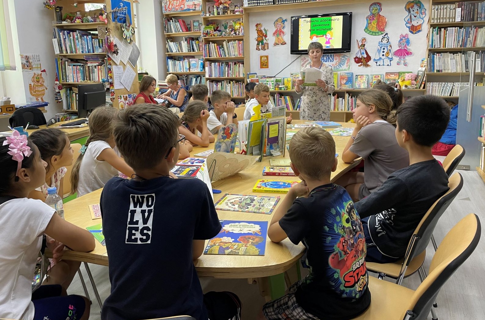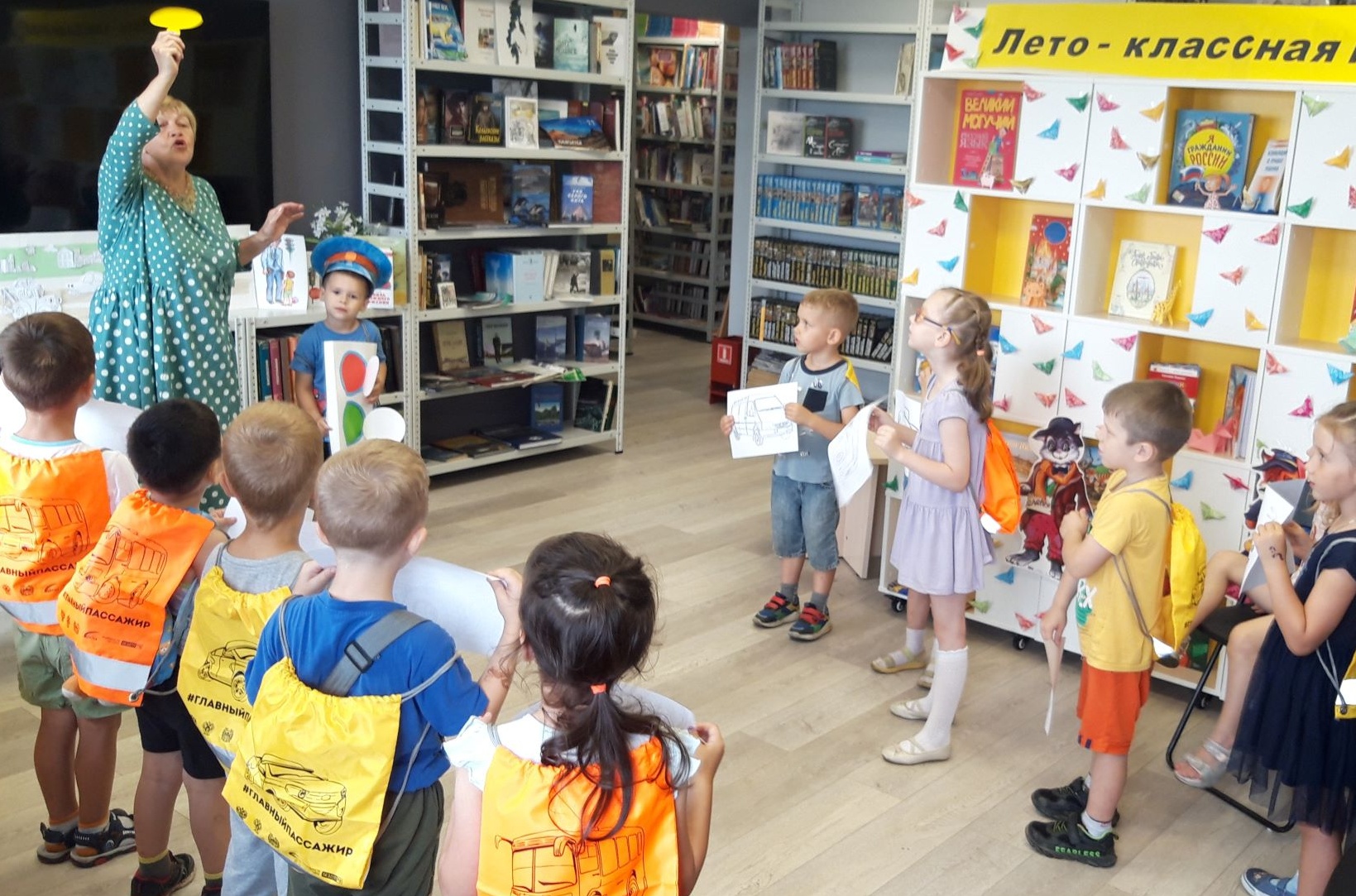В библиотеке № 7 дети из пришкольного лагеря школы № 74 совершили книжное путешествие по Азбуке дорожного движения. Сначала ребята услышали историю первого светофора и узнали о том, что в нашей стране первый стрелочный светофор установили в 1930 году, а для пешеходов придумали специальные пешеходные светофоры. Затем дети познакомились с иллюстрированной яркими цветными картинками книгой по правилам дорожного движения, а ее забавные герои рассказали много интересного и полезного: как вести себя во дворе, на оживленной улице, на загородной дороге и в транспорте. Много говорили о велосипедах и велосипедистах, о детях, катающихся на роликовых коньках, о том, что все это участники дорожного движения. А значит, должны соблюдать пдд. Потом в качестве закрепления знаний, дети играли в самые разные игры – много восторга вызвала игра на внимательность «красный, желтый, синий». С интересом прослушали сказку Джанни Родари и стихи Сергея Михалкова про светофор.