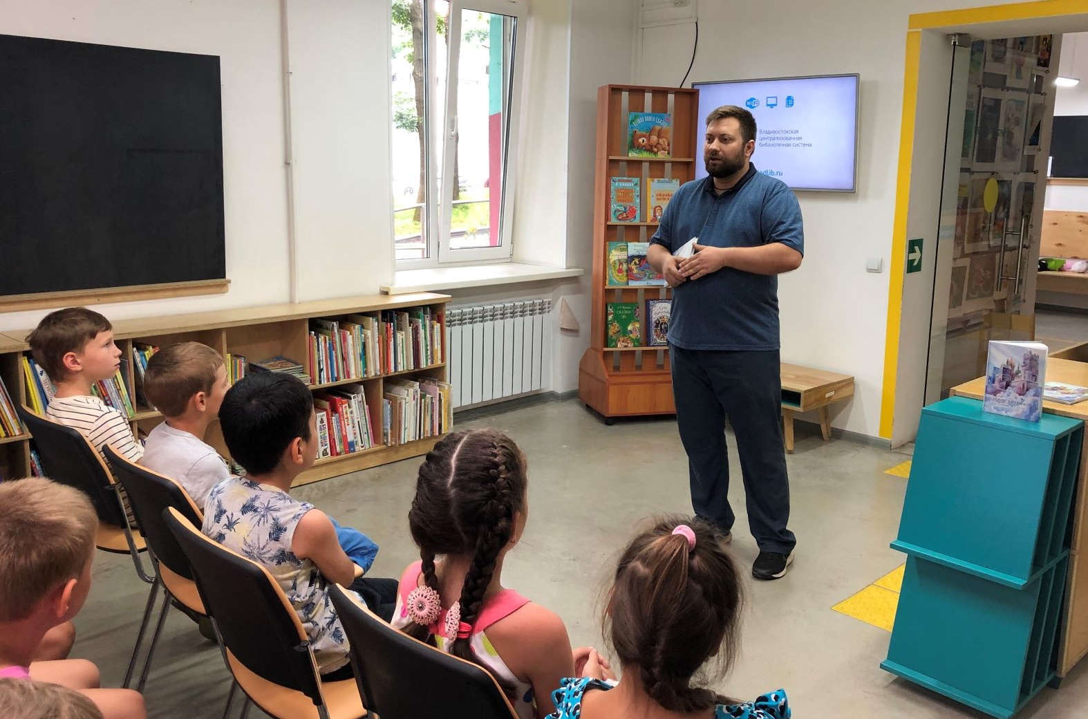 9 августа в библиотеке № 5 прошла встреча ребят из пришкольного лагеря школы № 13 с писателем Денисом Котенковым.
