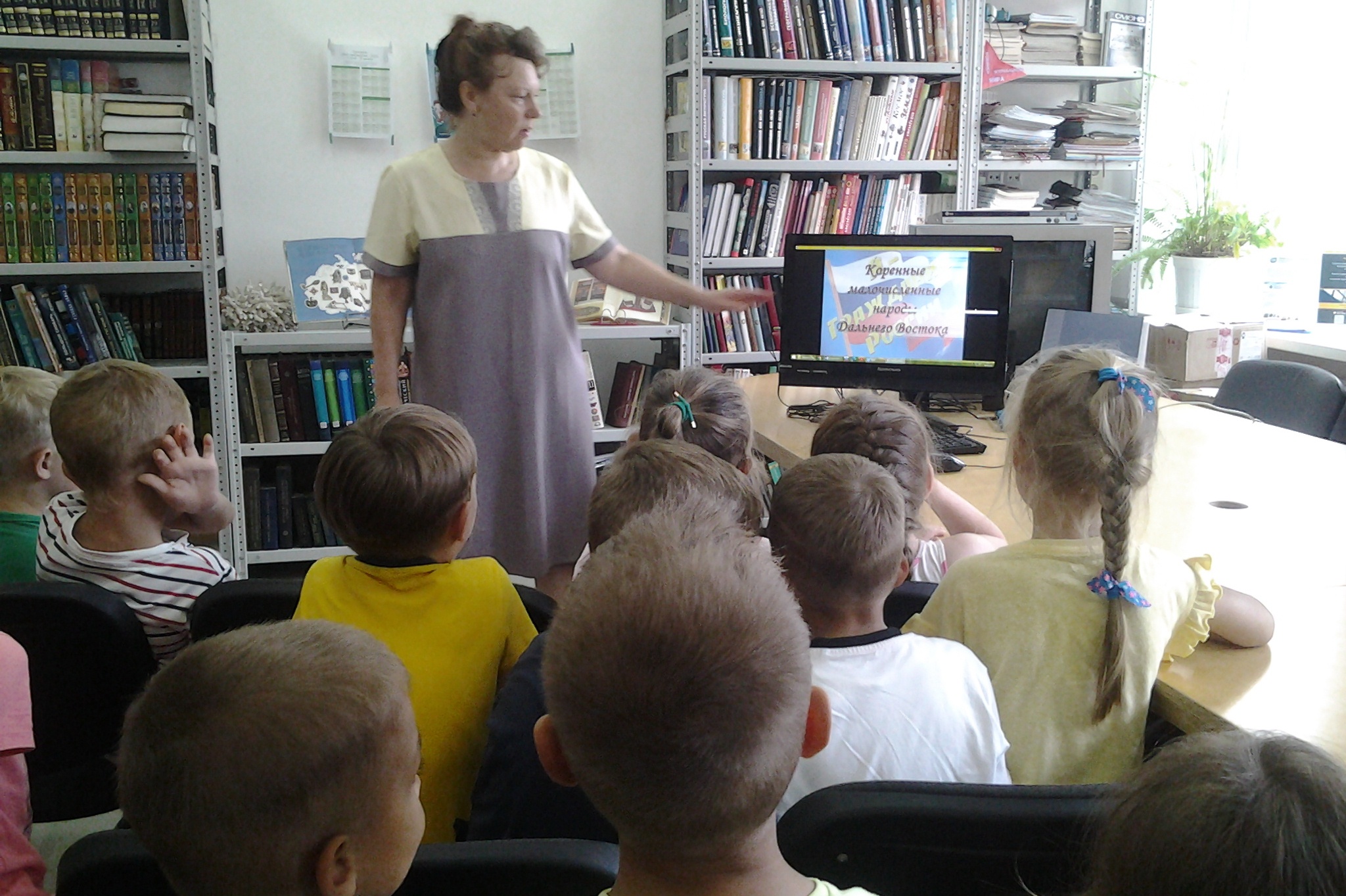18 августа в библиотеке № 16 знакомились с историей родного края, с народами населяющими Дальний Восток и Приморский край ребята из детского сада № 68.