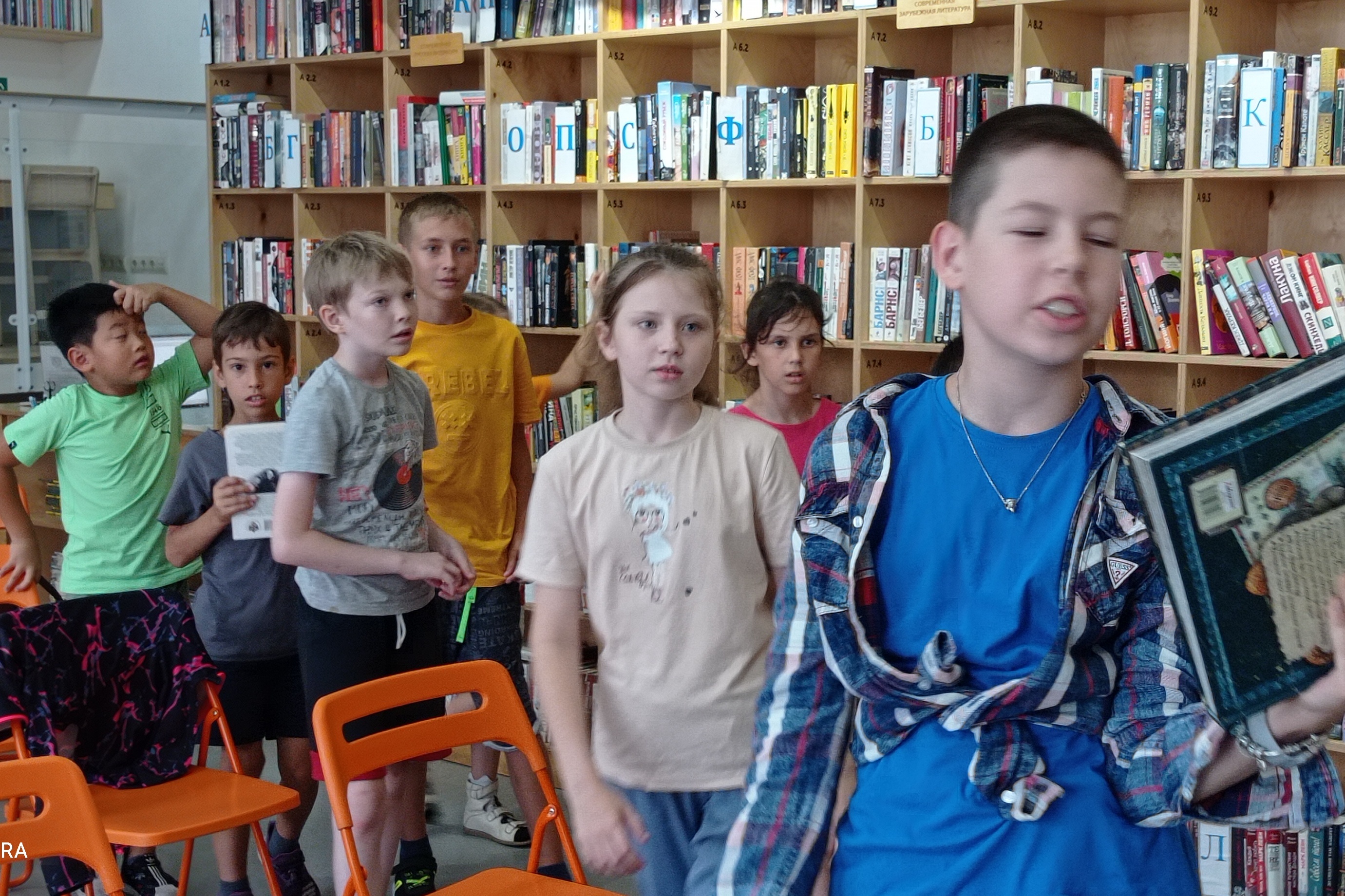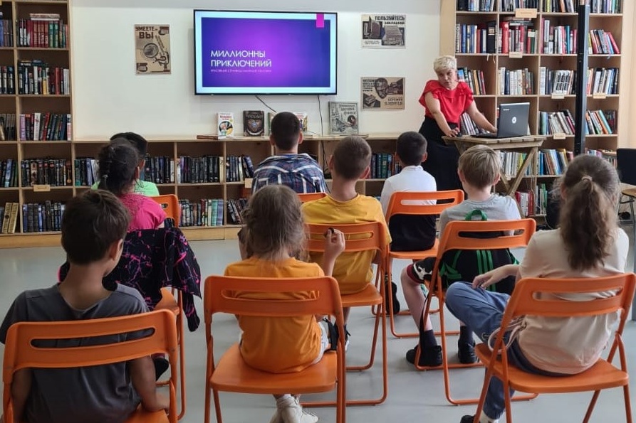 19 августа в библиотеке им. А.С. Пушкина (БУК) для ребят из городского лагеря «Afina Education» был проведен познавательный час «Миллионы приключений», где сотрудники библиотеки рассказали об особенностях приключенческого жанра в литературе и познакомили детей с наиболее популярными героями таких книг